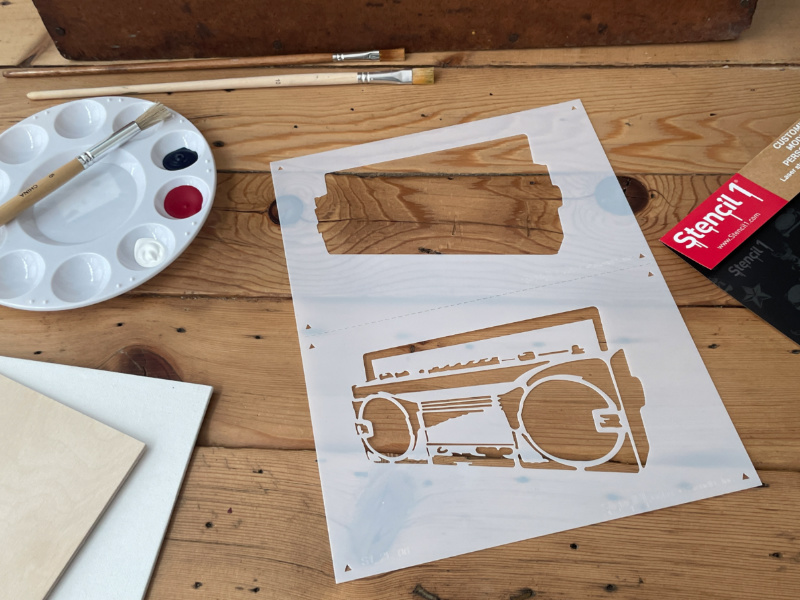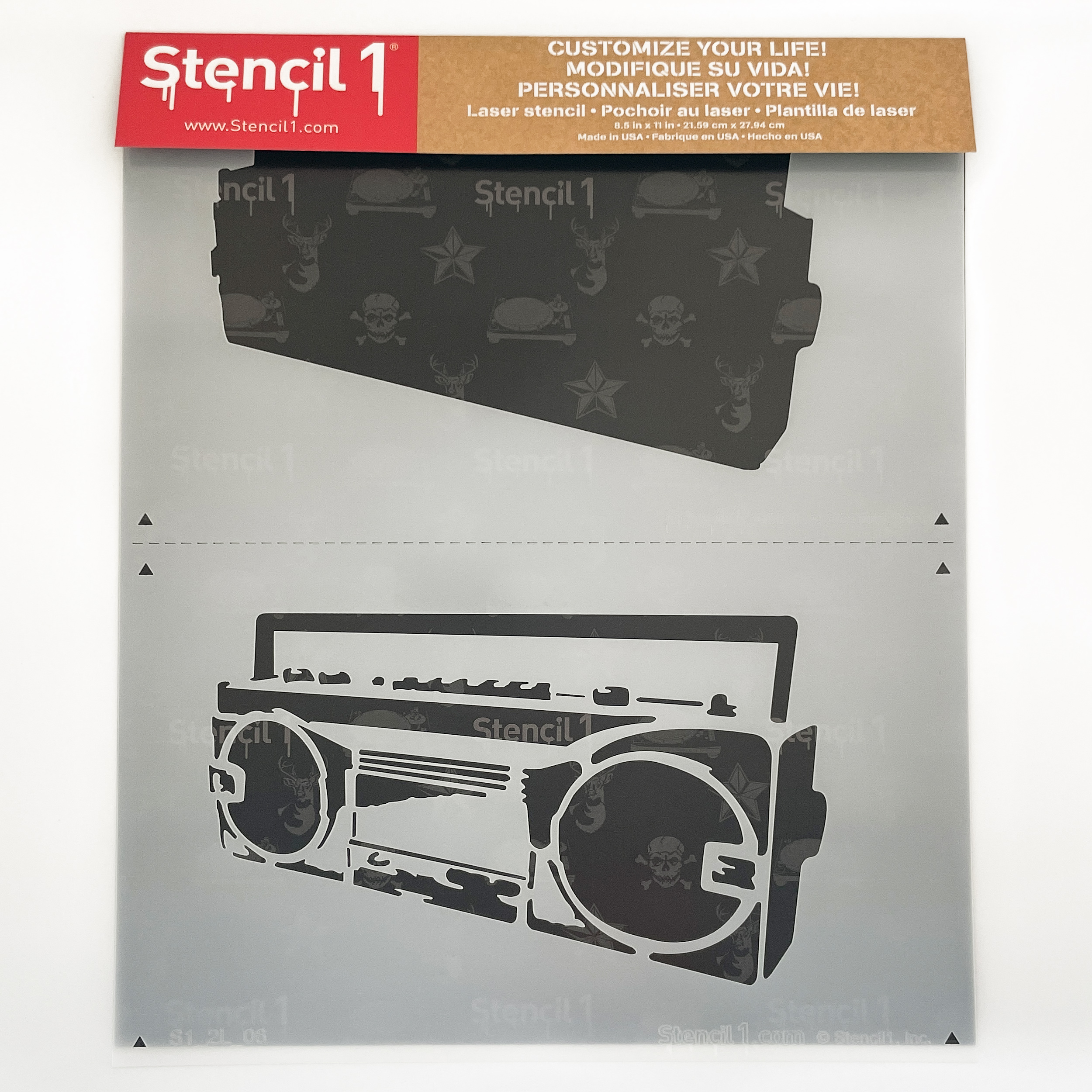 • The Stencil1® Boom Box – Layered Stencil 8.5″ x 11″ contains one 8.5″ x 11″ mylar stencil
