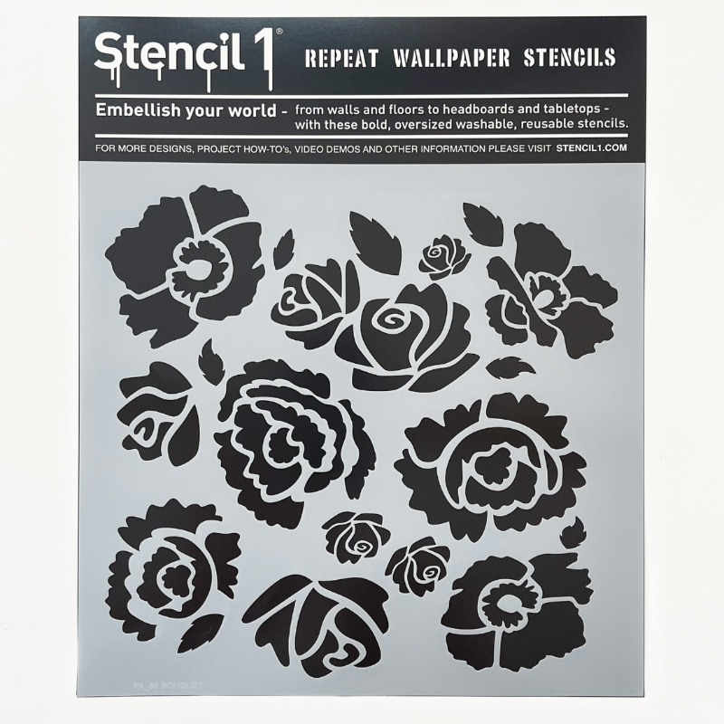 - The Stencil1® Bouquet Repeating – Wall Stencil 11″ x 11″ contains one 11″ x 11″ mylar stencil
