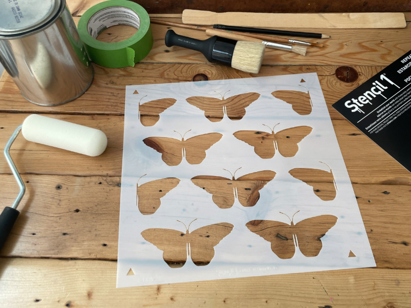 - The Stencil1® Butterflies Repeating – Wall Stencil 11″ x 11″ contains one 11″ x 11″ mylar stencil