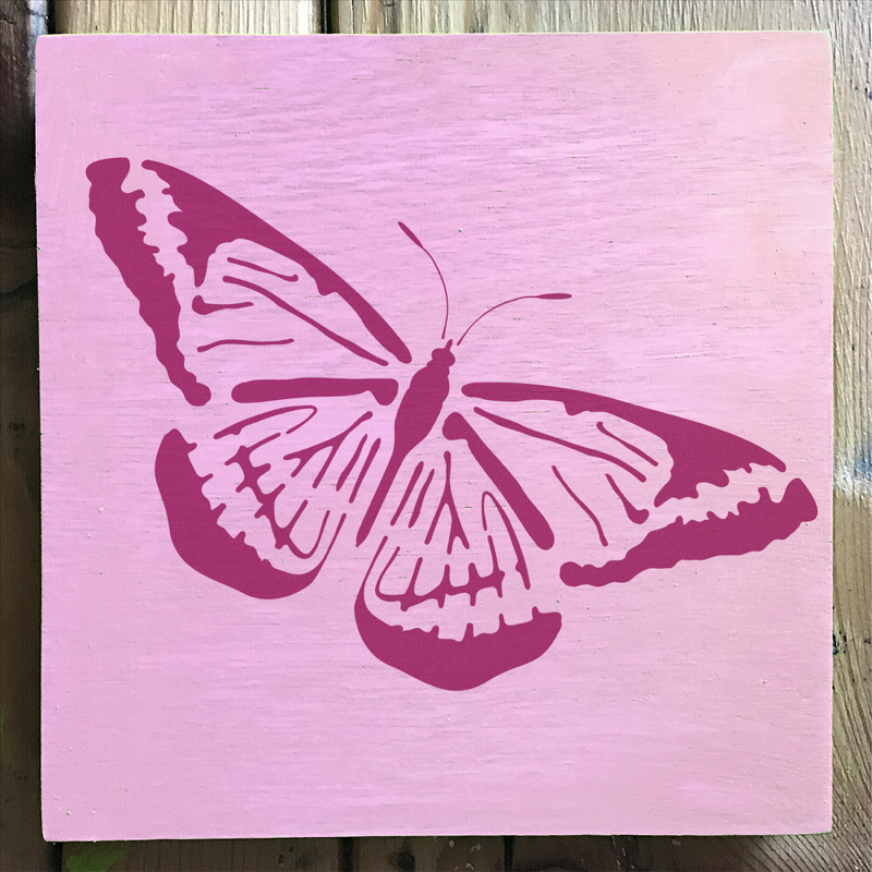 This Stencil1 Butterfly stencil is great for smaller surfaces. Layer with another Stencil1 stencil for a more complex design. Made of mylar, this stencil is washable, reusable and compatible with paints, inks, markers, pencils and more. Can be applied to a variety of materials, including wood, paper, fabric, metal, ceramic, concrete and glass. Show us how you create with Stencil1 by tagging #stencil1 for a chance to be featured on Stencil1.com.