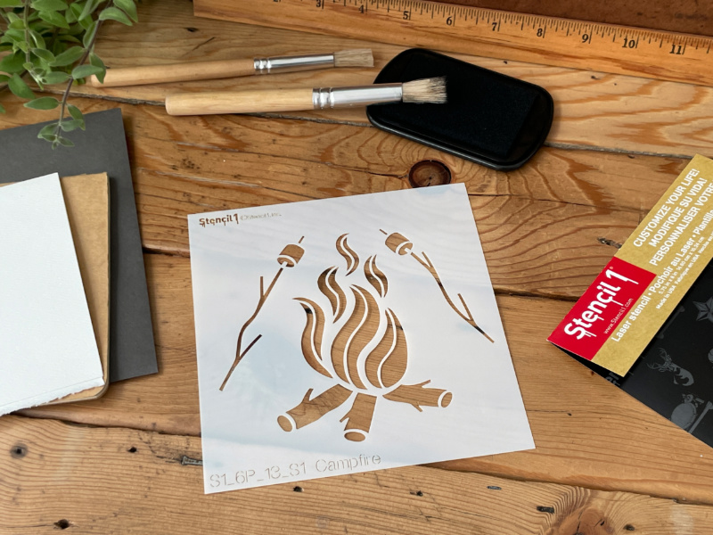 • The Stencil1® Camp Fire – Stencil 5.75″ x 6″ contains one 5.75″ x 6″ mylar stencil