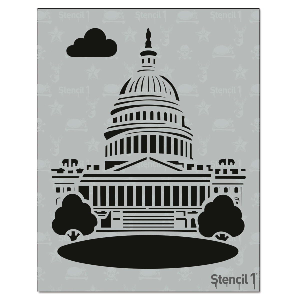 This Stencil1 Capital Building Washington DC Stencil is perfect for crafts and creative projects! Made of durable mylar, these stencils are washable, reusable, and compatible with paints, inks, markers, pencils, and more.