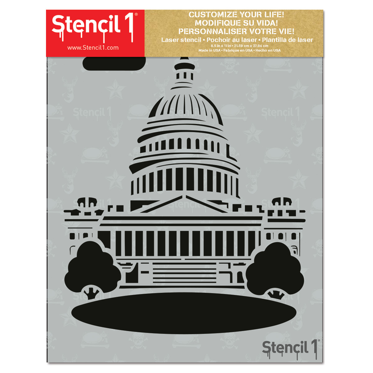 • The Stencil1® Capital Building Washington DC stencil 8.5″ x 11″ contains one 8.5″ x 11″ mylar stencil