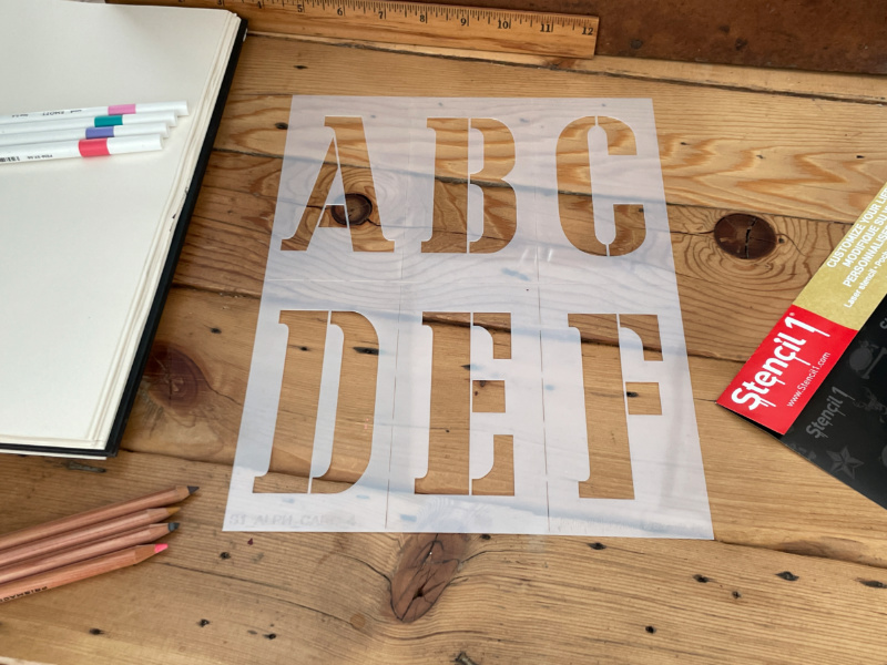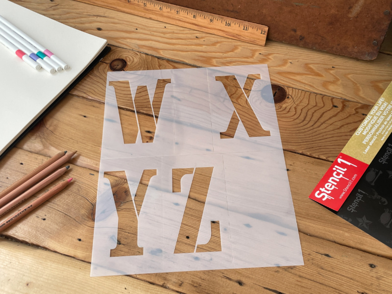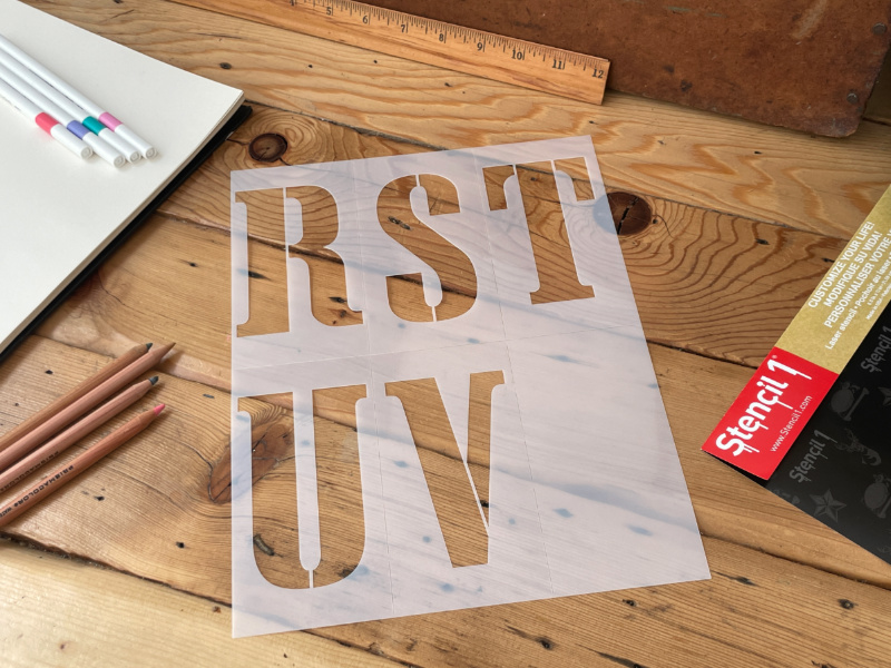 • The Stencil1® Cargo Stencil Font 4″ – Letter Stencil 8.5″ x 11″ contains five 8.5″ x 11″ mylar stencils with letters A-Z capital letters only