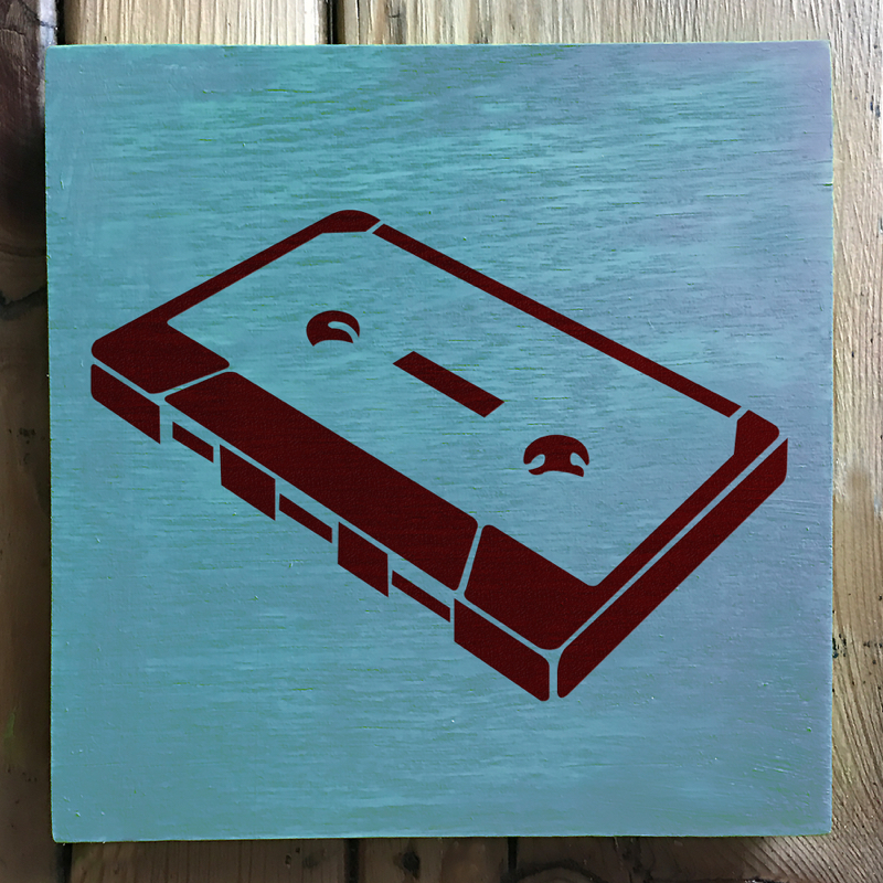 This single image cassette stencil measures 5.75″ wide by 6″ in height. Ideal for smaller surfaces, art projects, t-shirts, and more! (Also available in 8.5″ x 11″ )