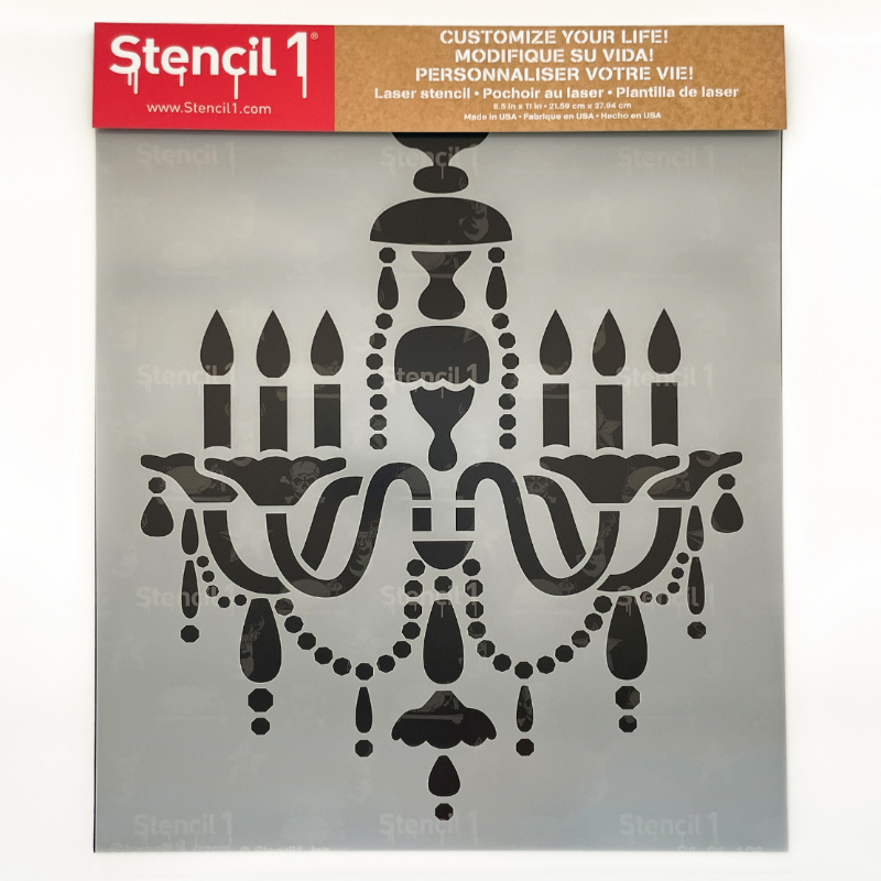 - The Stencil1® Chandelier – Stencil 8.5″ x 11″ contains one 8.5″ x 11″ mylar stencil