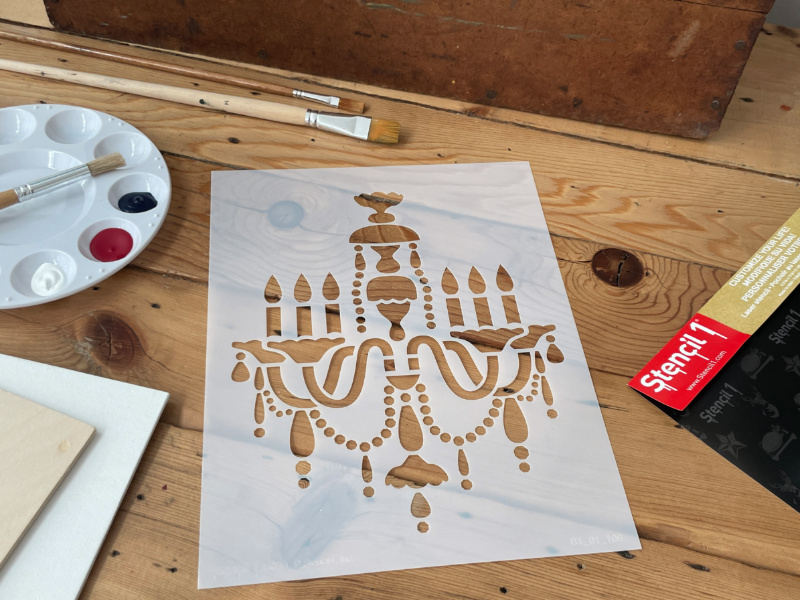 This Stencil1 Chandelier stencil is great for many surfaces. Layer with another Stencil1 stencil for a more complex design. Made of mylar, this stencil is washable, reusable and compatible with paints, inks, markers, pencils and more. Can be applied to a variety of materials, including wood, paper, fabric, metal, ceramic, concrete and glass. Show us how you create with Stencil1 by tagging #stencil1 for a chance to be featured on Stencil1.com.