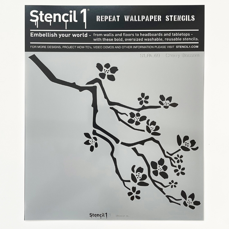 - The Stencil1® Cherry Blossom Repeating – Wall Stencil 11″ x 11″ contains one 11″ x 11″ mylar stencil