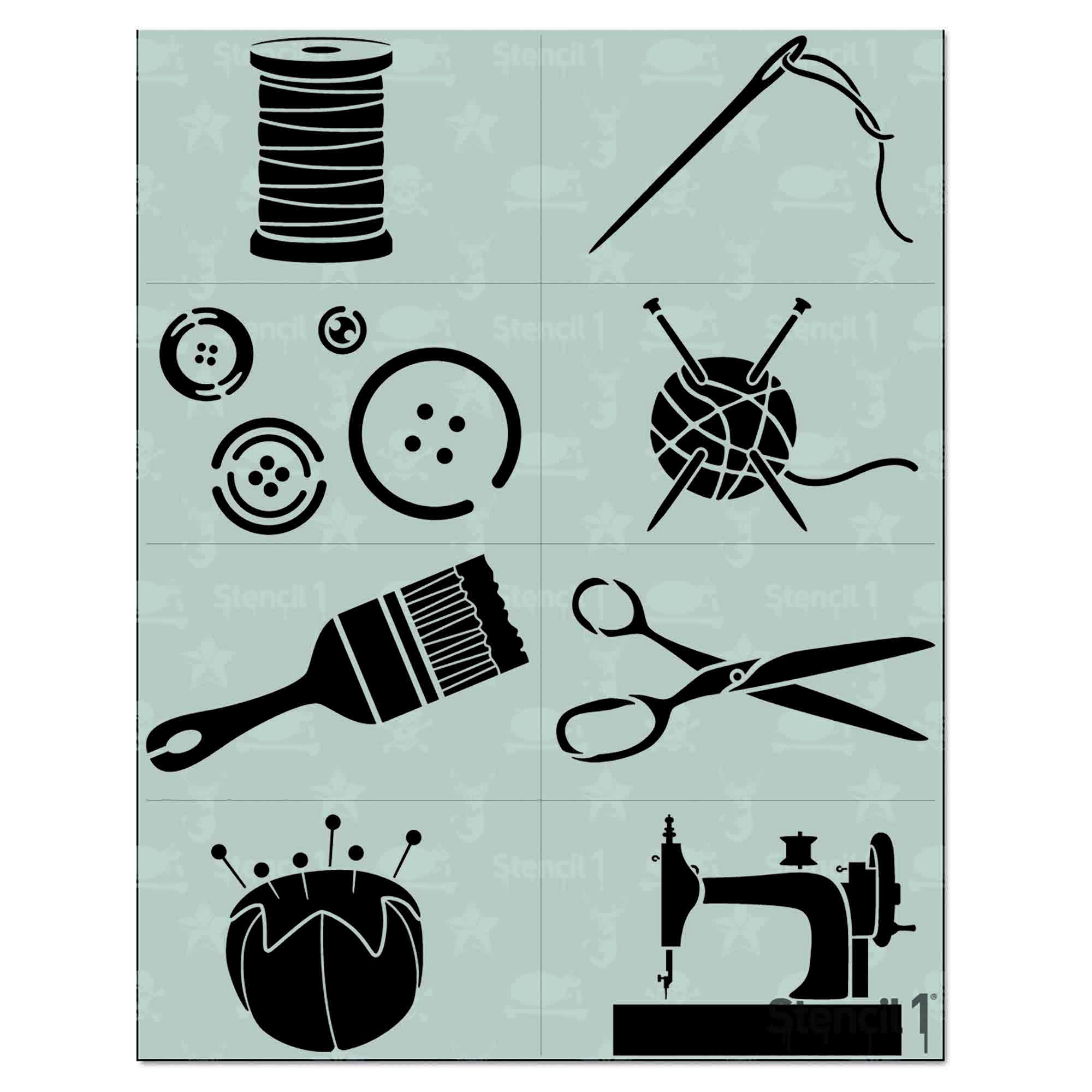 This Stencil1 8 Pack Craft stencil gives you multiple stencils, cut on one sheet, for all your creative projects. Ideal for the crafter or maker that loves mixed media and craft icons! Layer with another Stencil1 stencil for a more complex design. Made of mylar, this stencil is washable, reusable and compatible with paints, inks, markers, pencils and more. Can be applied to a variety of materials, including wood, paper, fabric, metal, ceramic, concrete and glass. Show us how you create with Stencil1 by tagging #stencil1 for a chance to be featured on Stencil1.com.