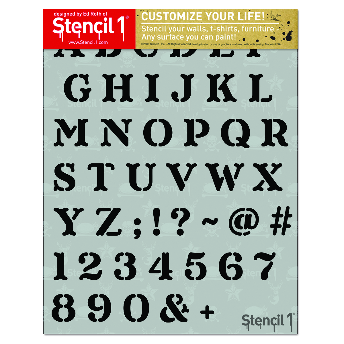 Use the Stencil1 Crafty Small Font Letter stencils with 1″ tall letters and numbers to customize art projects, monogram clothing, or design signs and posters. Perfect for school projects, labeling items, and personal property, or to stencil your favorite quotes and sayings. Layer with another Stencil1 stencil for a more complex design. Made of mylar, stencils are washable, reusable, and compatible with paints, inks, markers, pencils, and more. Can be applied to a variety of materials, including wood, paper, fabric, metal, ceramic, concrete, and glass. Show us how you create with Stencil1 by tagging #stencil1 for a chance to be featured on Stencil1.com.