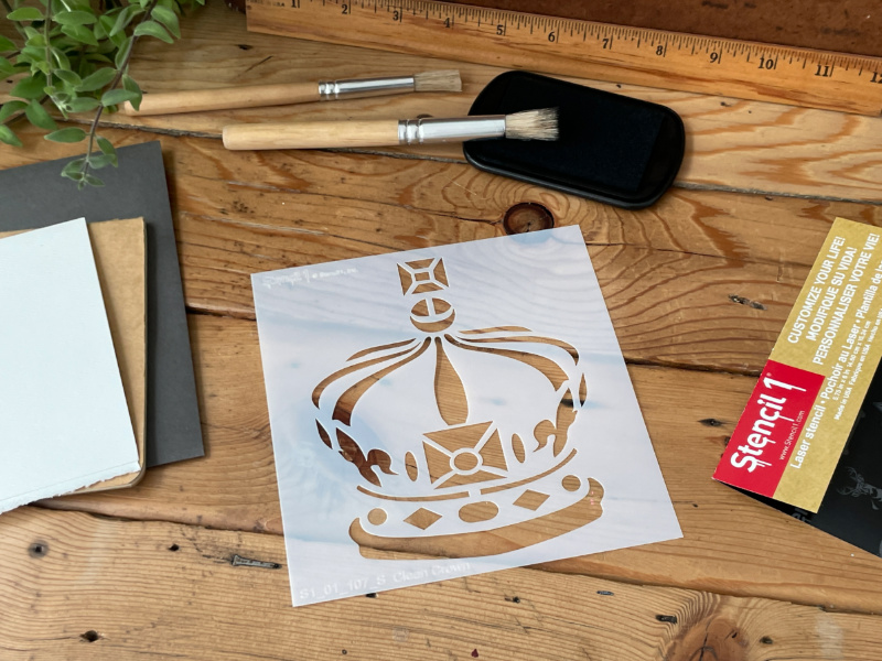 King me! Get royal with the Stencil1 Crown Clean stencil on party invites, scrapbooking, vision boards and more. Layer with another Stencil1 stencil for a more complex design. Made of mylar, this stencil is washable, reusable and compatible with paints, inks, markers, pencils and more. Can be applied to a variety of materials, including wood, paper, fabric, metal, ceramic, concrete and glass. Show us how you create with Stencil1 by tagging #stencil1 for a chance to be featured on Stencil1.com.
