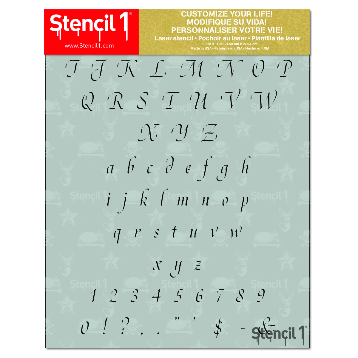 Use the Stencil1 Elegant Script Font Letter stencils with 1/2 inch tall letters and numbers to customize art projects, monogram clothing, or design signs and posters. Perfect for school projects, labeling items, and personal property, or to stencil your favorite quotes and sayings. Layer with another Stencil1 stencil for a more complex design. Made of mylar, stencils are washable, reusable, and compatible with paints, inks, markers, pencils, and more. Can be applied to a variety of materials, including wood, paper, fabric, metal, ceramic, concrete, and glass. Show us how you create with Stencil1 by tagging #stencil1 for a chance to be featured on Stencil1.com.