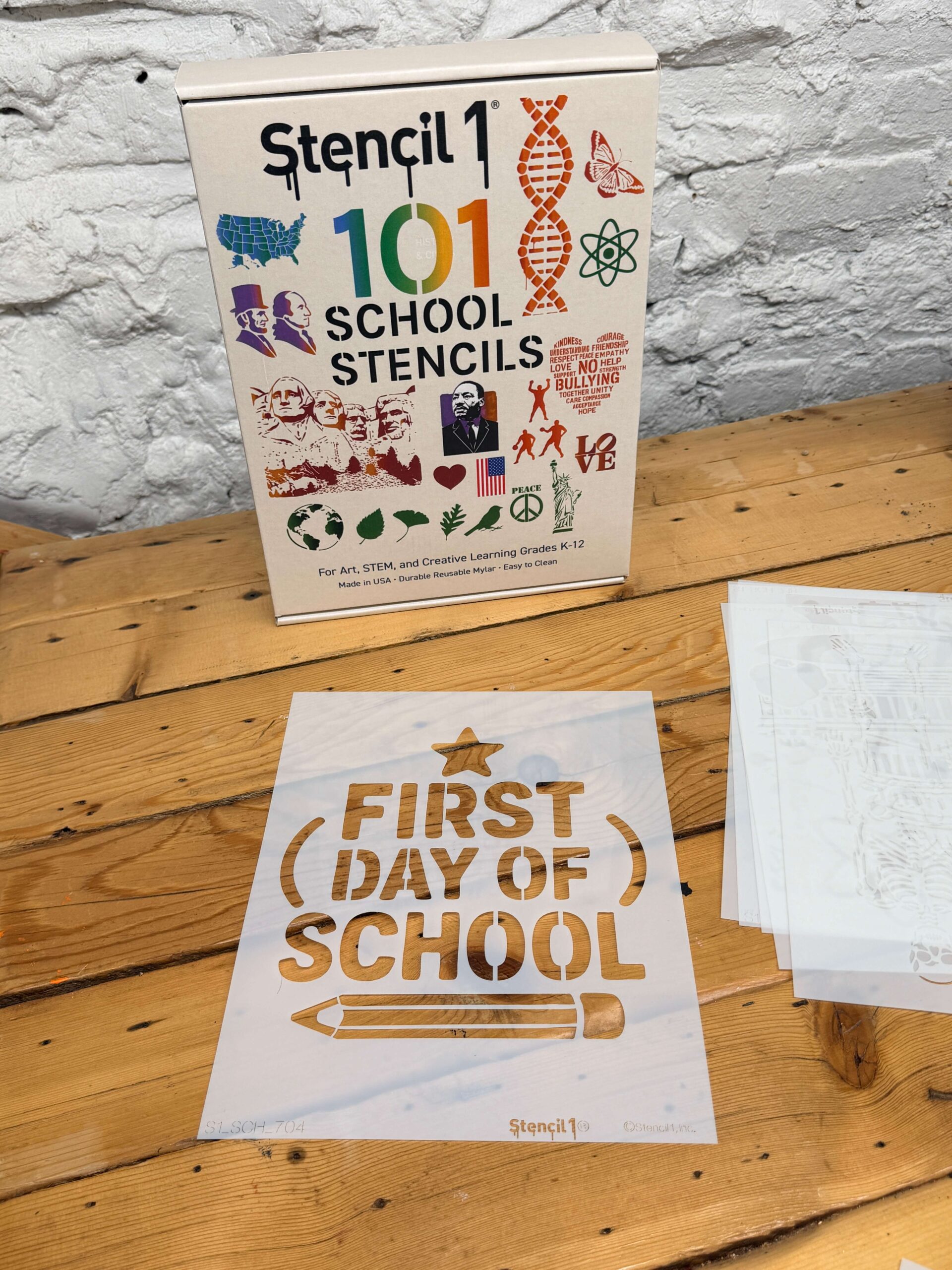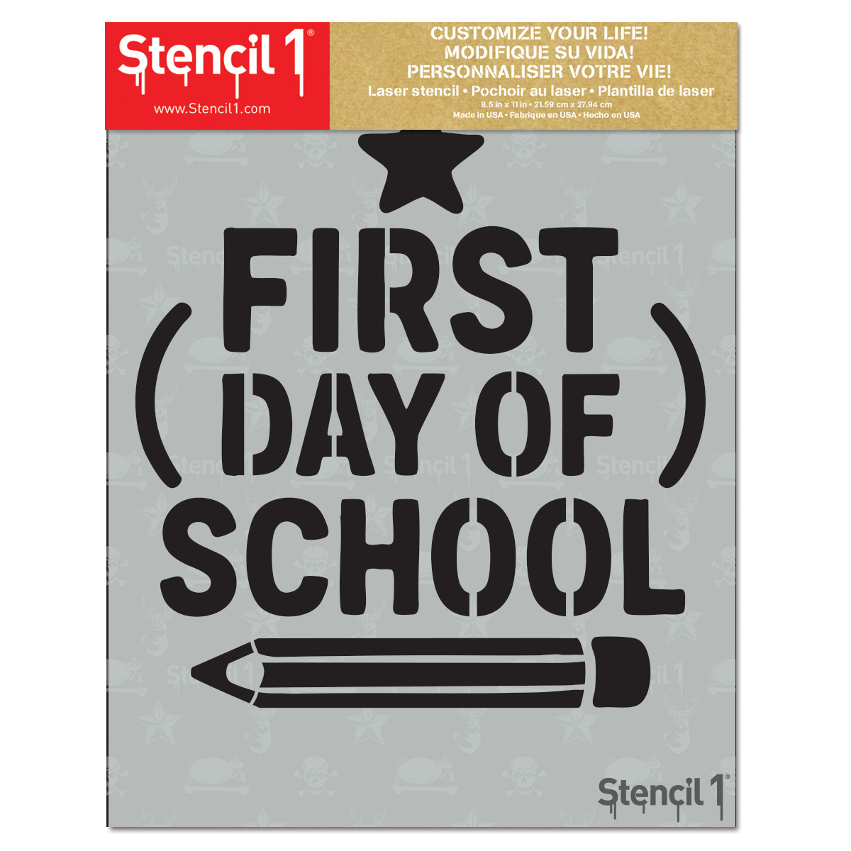 • The Stencil1® First Day School Stencil 8.5″ x 11″ contains one 8.5″ x 11″ mylar stencil
