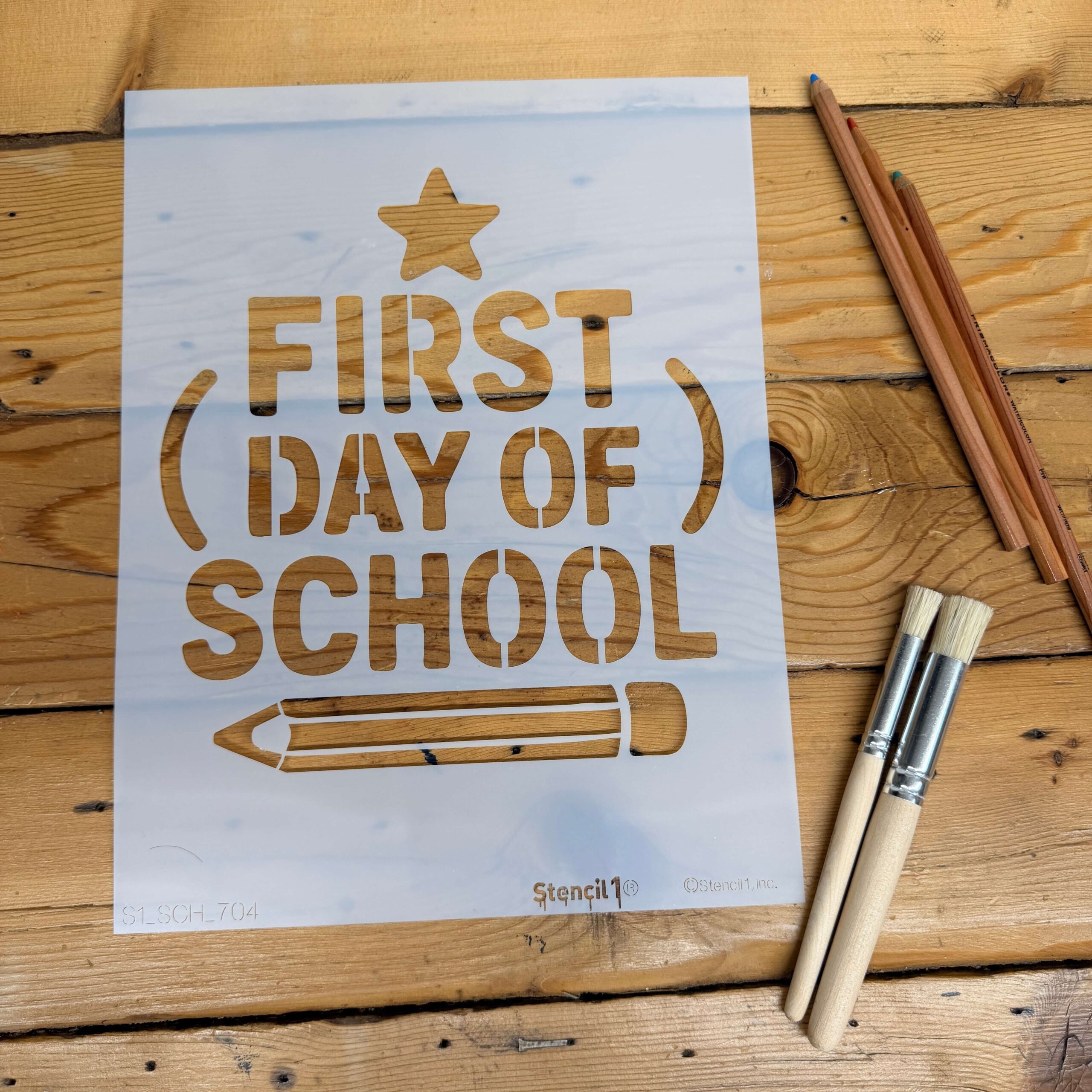 This Stencil1 First Day School Stencil is perfect for kids’ crafts and creative projects! Made of durable mylar, these stencils are washable, reusable, and compatible with paints, inks, markers, pencils, and more.