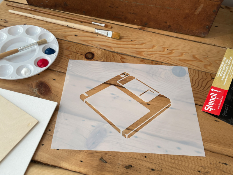 This Stencil1 Floppy stencil is great for many surfaces. Layer with another Stencil1 stencil for a more complex design. Made of mylar, this stencil is washable, reusable and compatible with paints, inks, markers, pencils and more. Can be applied to a variety of materials, including wood, paper, fabric, metal, ceramic, concrete and glass. Show us how you create with Stencil1 by tagging #stencil1 for a chance to be featured on Stencil1.com.