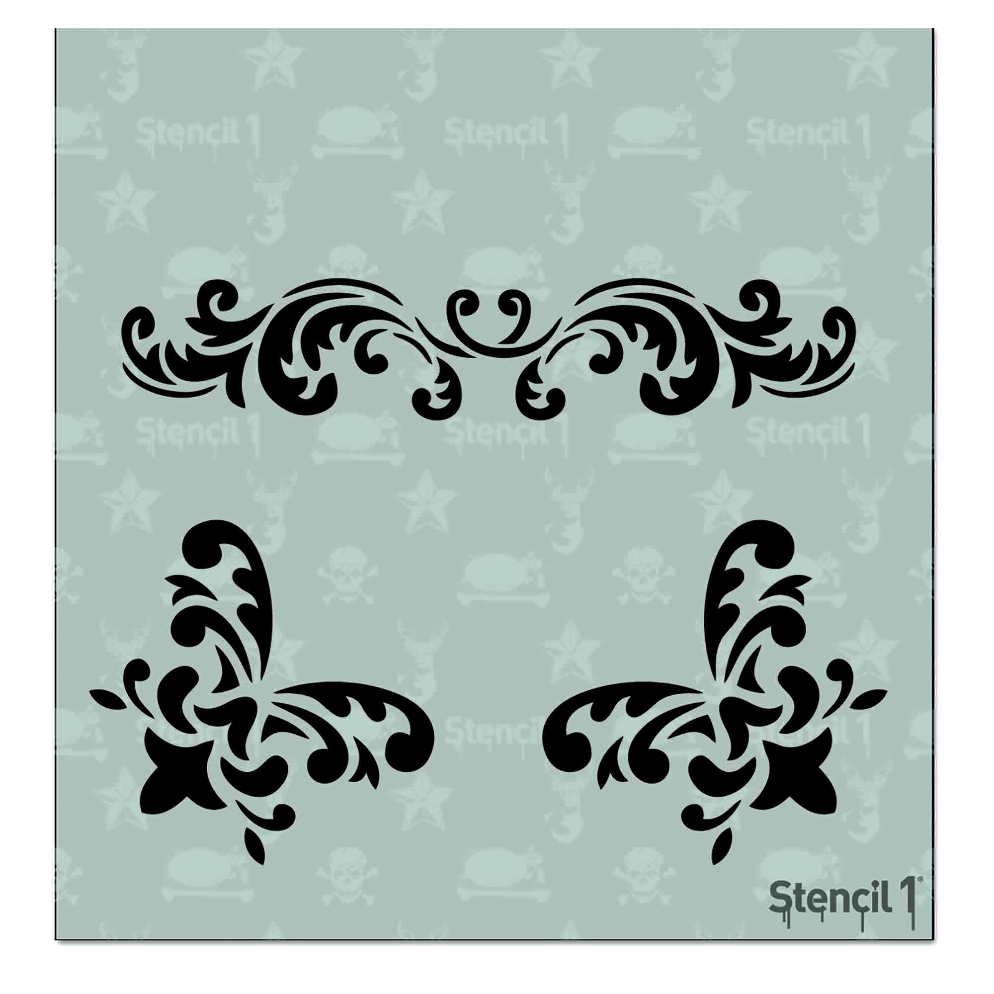 This Stencil1 Flourishes 2 stencil is great for smaller surfaces. Layer with another Stencil1 stencil for a more complex design. Made of mylar, this stencil is washable, reusable and compatible with paints, inks, markers, pencils and more. Can be applied to a variety of materials, including wood, paper, fabric, metal, ceramic, concrete and glass. Show us how you create with Stencil1 by tagging #stencil1 for a chance to be featured on Stencil1.com.