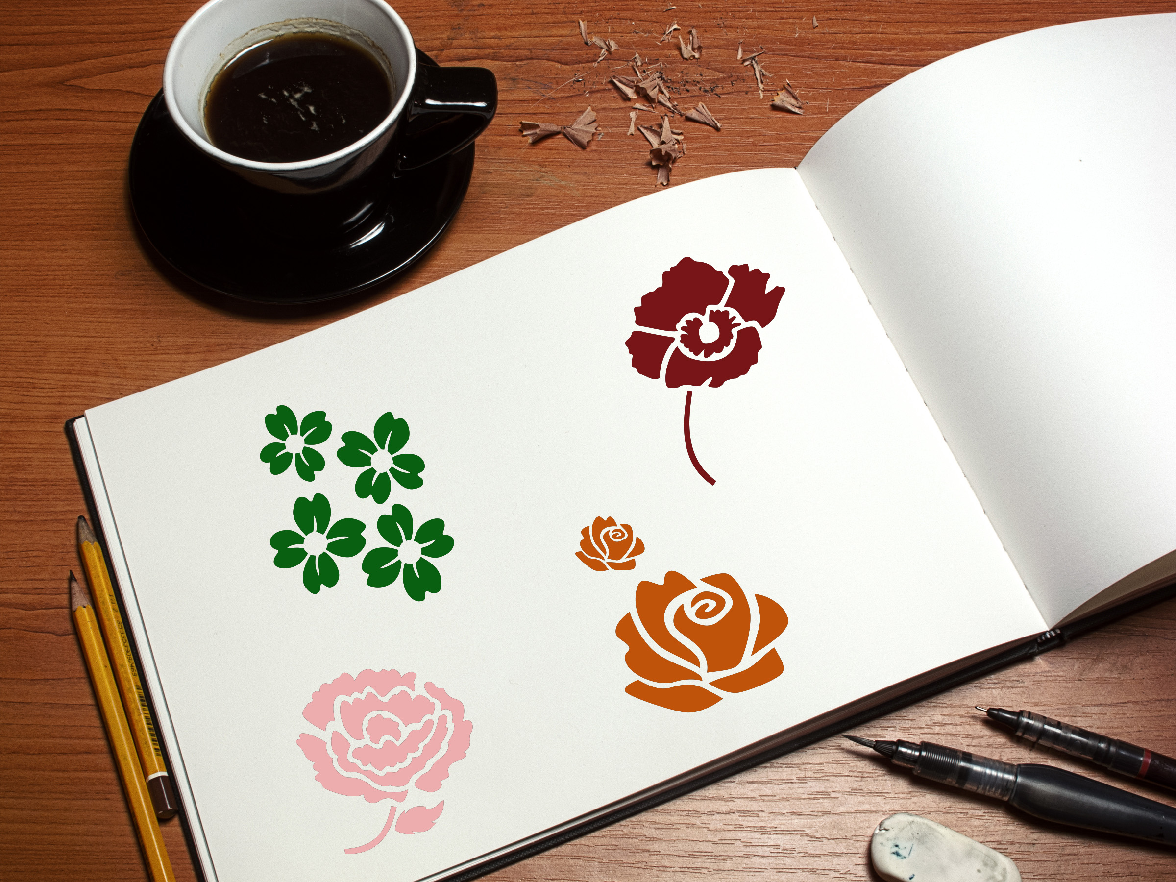 This Stencil1 Flower 4-Pack Peony, poppy, rose, sakura stencil gives you multiple stencils, cut on one sheet, for all your creative projects. Included are 4 mini silhouette stencils ideal for wardrobe, art projects or home décor. Layer with another Stencil1 stencil for a more complex design. Made of mylar, this stencil is washable, reusable and compatible with paints, inks, markers, pencils and more. Can be applied to a variety of materials, including wood, paper, fabric, metal, ceramic, concrete and glass. Show us how you create with Stencil1 by tagging #stencil1 for a chance to be featured on Stencil1.com.