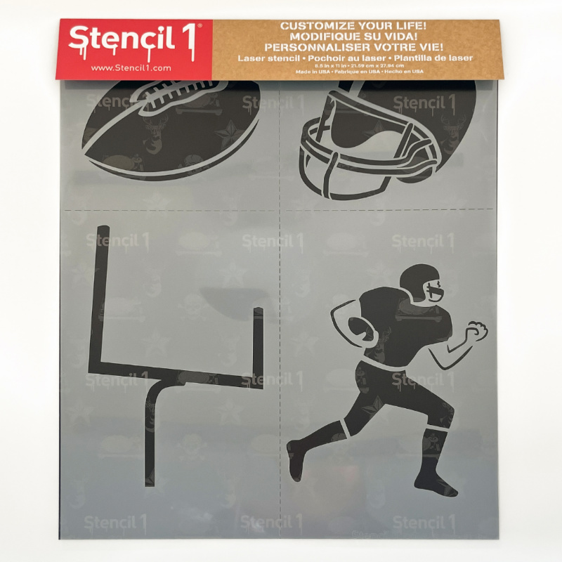 • The Stencil1® Football Multipack 4ct – Stencil 8.5″ x 11″ contains one 8.5″ x 11″ mylar sheet with four stencils
