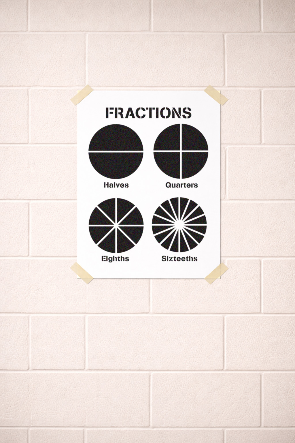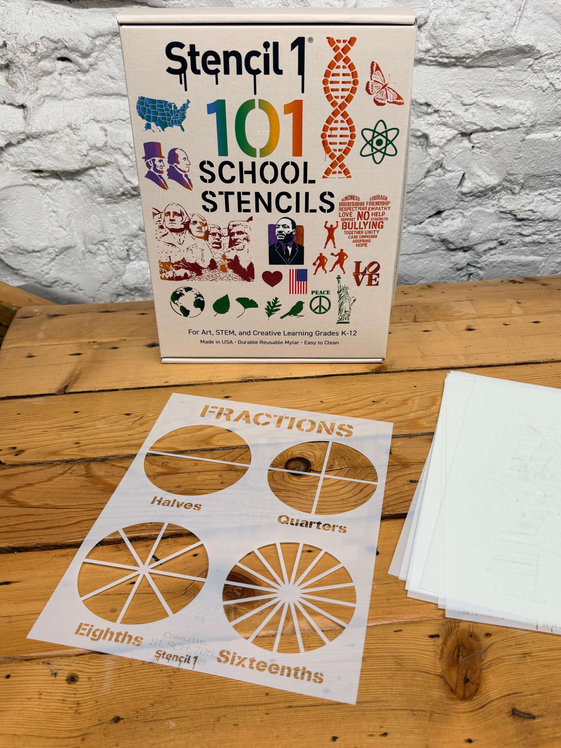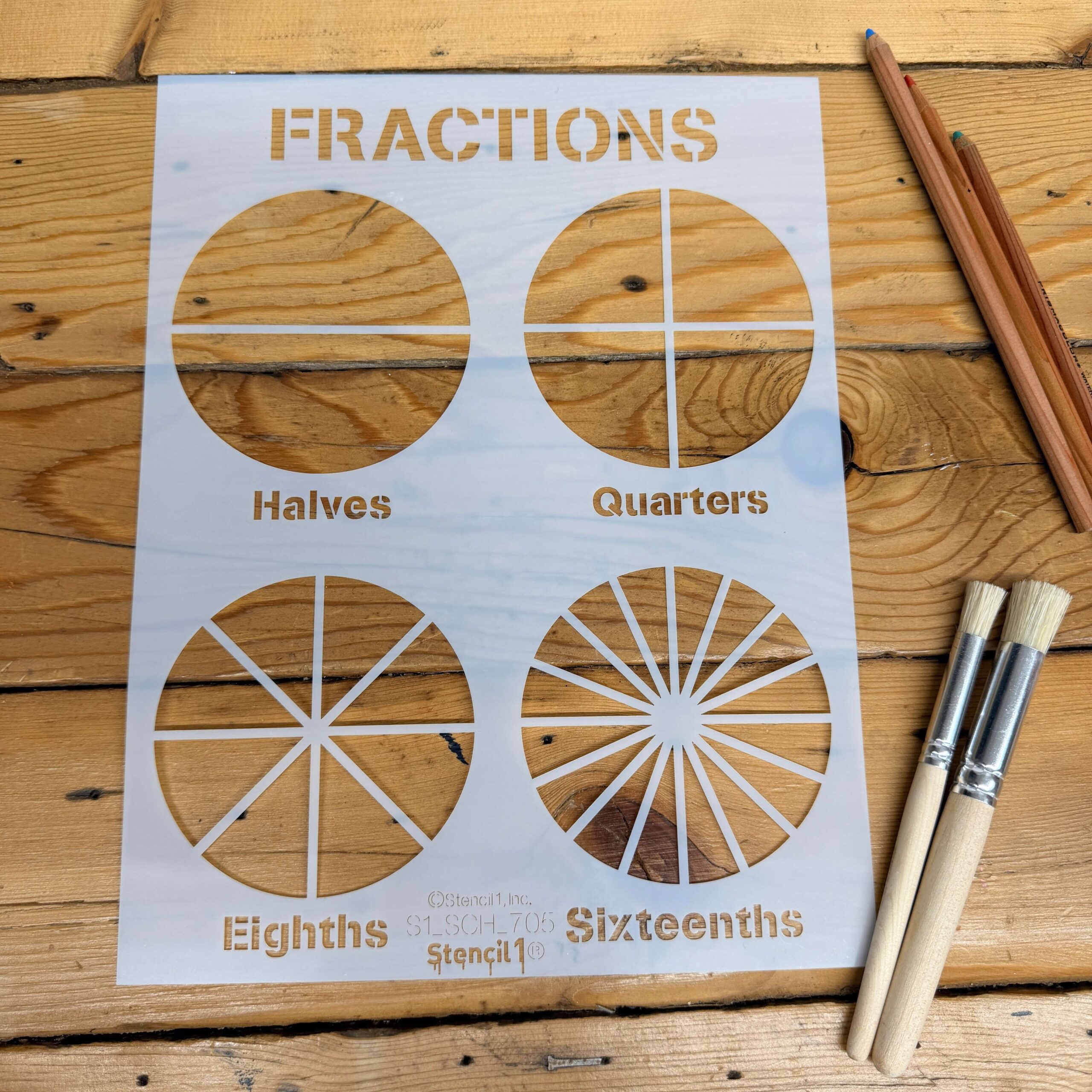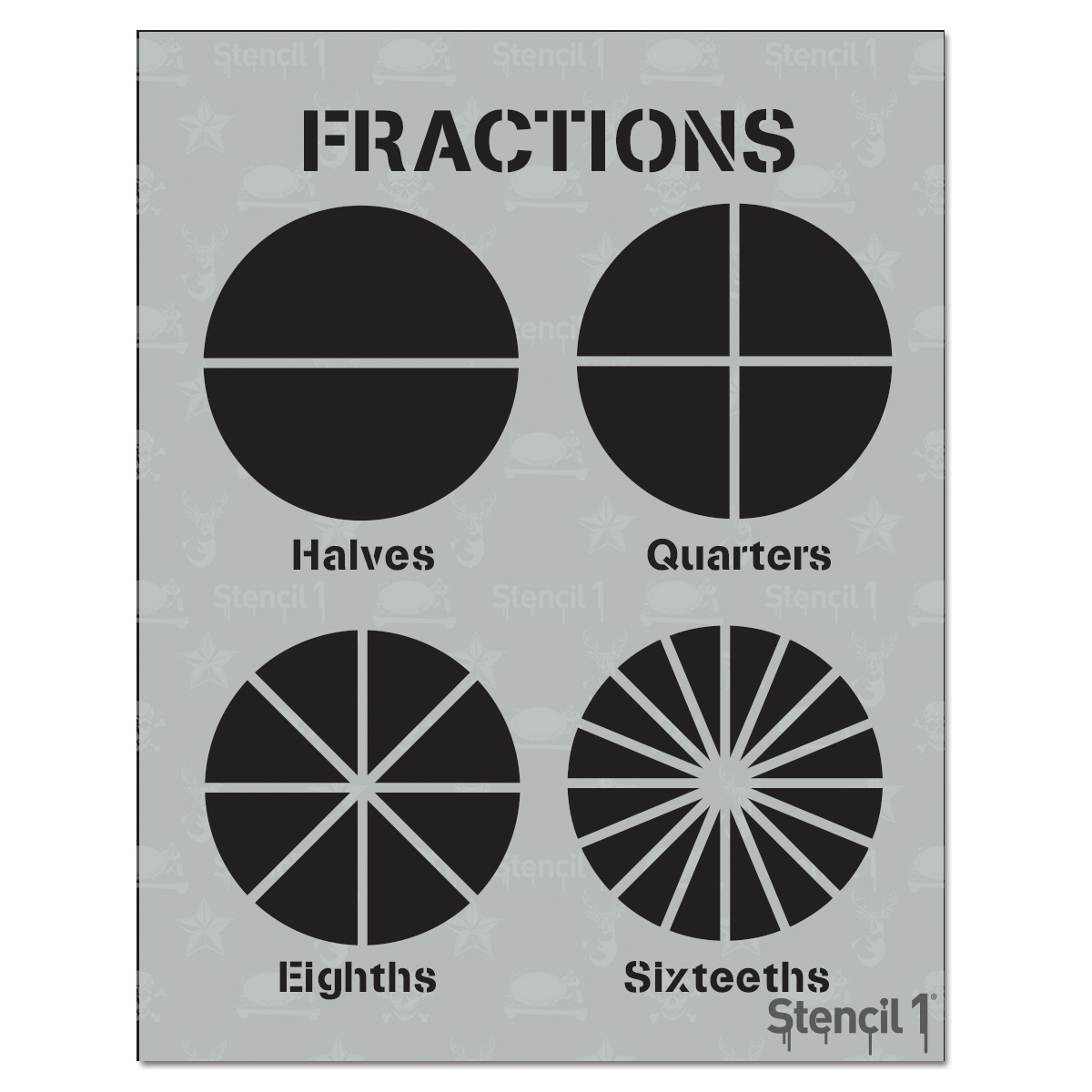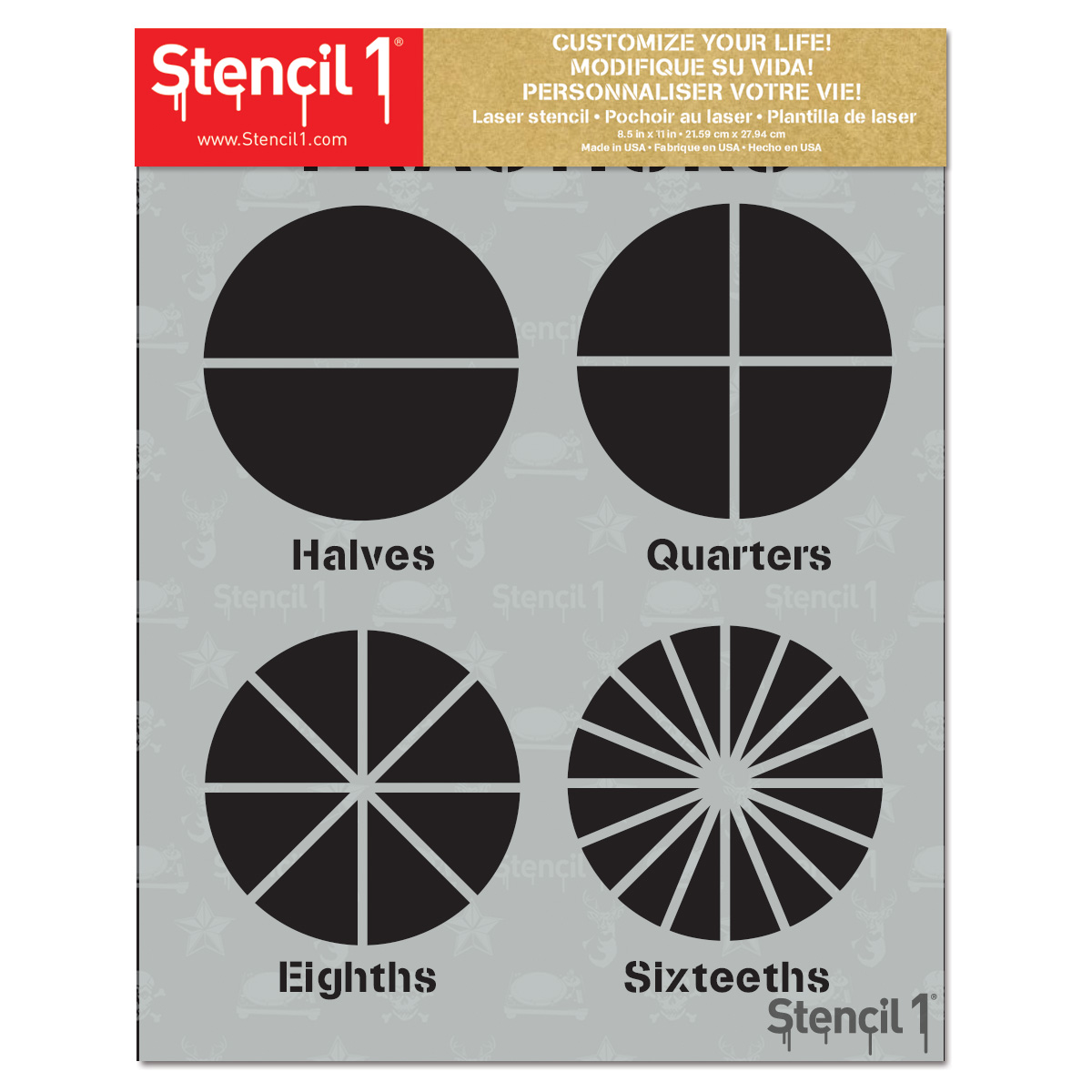 • The Stencil1® Fraction Pies Stencil 8.5″ x 11″ contains one 8.5″ x 11″ mylar stencil