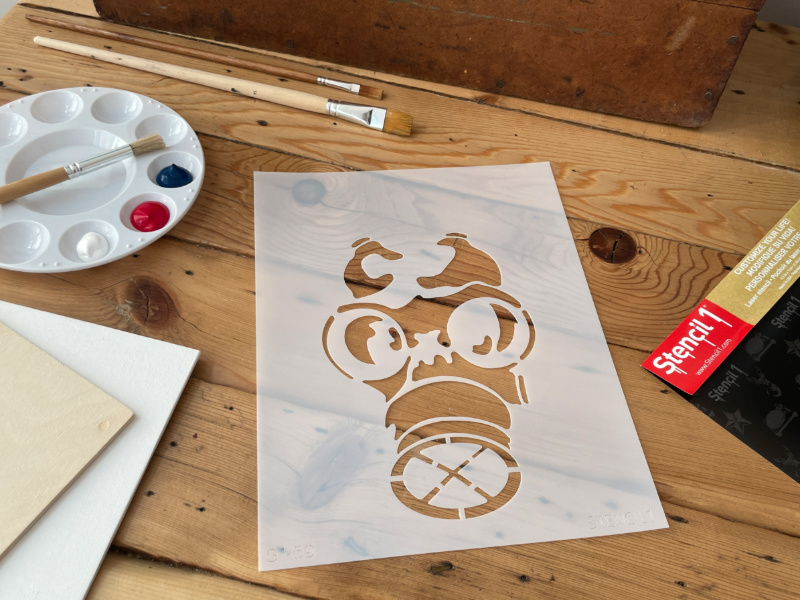 This Stencil1 Gas Mask stencil is great for many surfaces. Layer with another Stencil1 stencil for a more complex design. Made of mylar, this stencil is washable, reusable and compatible with paints, inks, markers, pencils and more. Can be applied to a variety of materials, including wood, paper, fabric, metal, ceramic, concrete and glass. Show us how you create with Stencil1 by tagging #stencil1 for a chance to be featured on Stencil1.com.