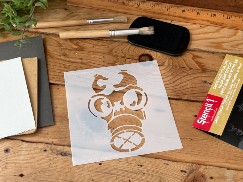 - The Stencil1® Gas Mask– Stencil 8.5″ x 11″ contains one 8.5″ x 11″ mylar stencil