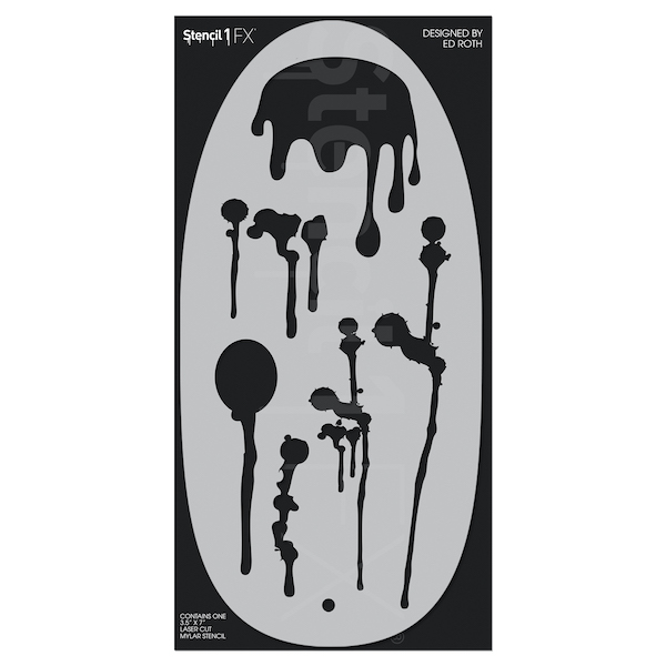 - 💧 Contains one 3.5″ x 7″ laser cut mylar Graffiti Drips stencil, oval in shape. Made in USA.