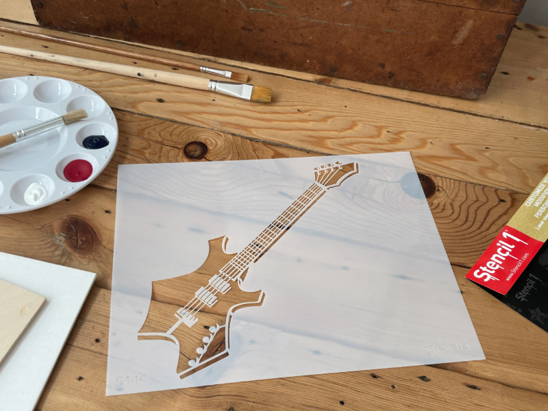 This Stencil1 Guitar stencil is great for many surfaces. Layer with another Stencil1 stencil for a more complex design. Made of mylar, this stencil is washable, reusable and compatible with paints, inks, markers, pencils and more. Can be applied to a variety of materials, including wood, paper, fabric, metal, ceramic, concrete and glass. Show us how you create with Stencil1 by tagging #stencil1 for a chance to be featured on Stencil1.com.