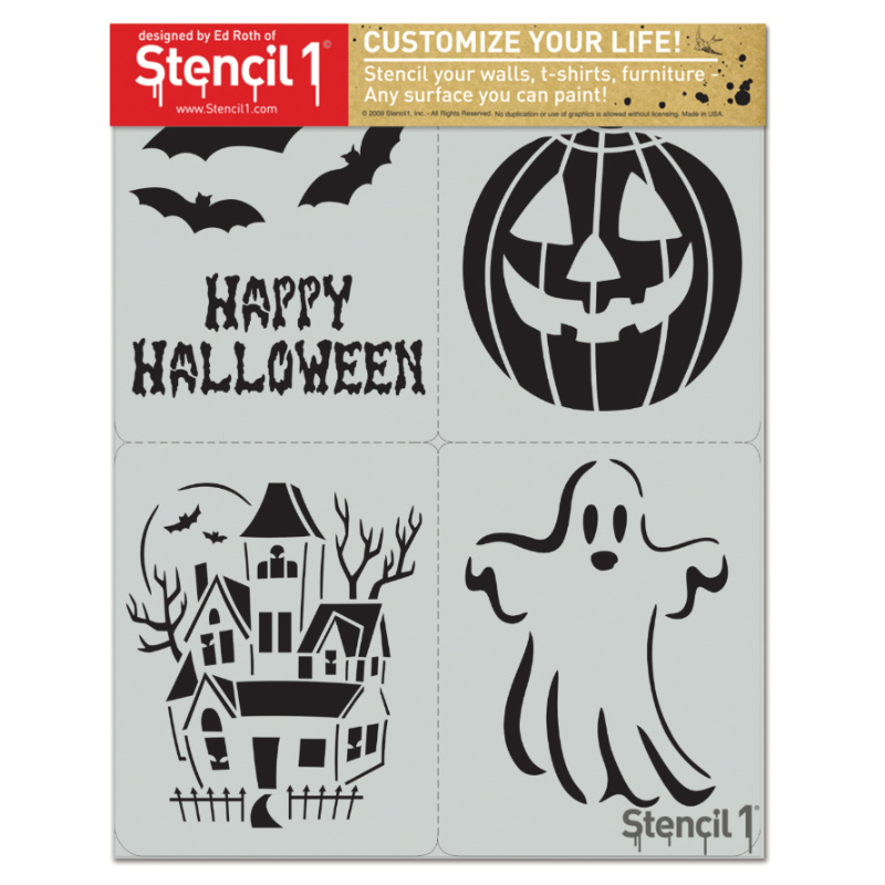 • The Stencil1® Halloween Multipack 4ct – Stencil 8.5″ x 11″ contains one 8.5″ x 11″ mylar sheet with four stencils