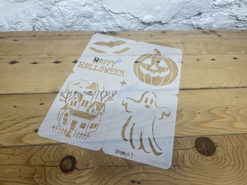 This Stencil1 4 Pack Mini Halloween stencil gives you multiple Halloween-themed stencils, cut on one sheet, including a “Happy Halloween” Sign with Bats, Jack-o-Lantern, Haunted House, & Ghost. These stencils will make your Halloween projects extra spooky and cool! All of our Halloween stencils can be used to customize clothing and costumes, create Halloween party invites, stencil trick-or-treat bags, and, of course, paint pumpkins! Have a Halloween crafting party! Layer with another Stencil1 stencil for a more complex design. Made of mylar, this stencil is washable, reusable and compatible with paints, inks, markers, pencils and more. Can be applied to a variety of materials, including wood, paper, fabric, metal, ceramic, concrete and glass. Show us how you create with Stencil1 by tagging #stencil1 for a chance to be featured on Stencil1.com.