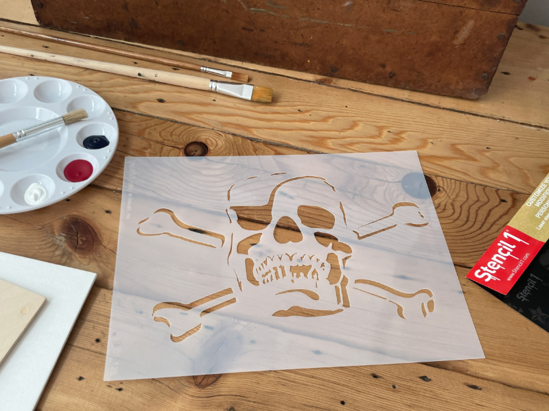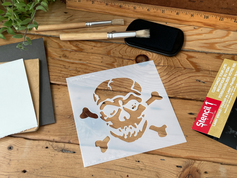This Stencil1 Jolly Roger stencil is great for many surfaces. Layer with another Stencil1 stencil for a more complex design. Made of mylar, this stencil is washable, reusable and compatible with paints, inks, markers, pencils and more. Can be applied to a variety of materials, including wood, paper, fabric, metal, ceramic, concrete and glass. Show us how you create with Stencil1 by tagging #stencil1 for a chance to be featured on Stencil1.com.