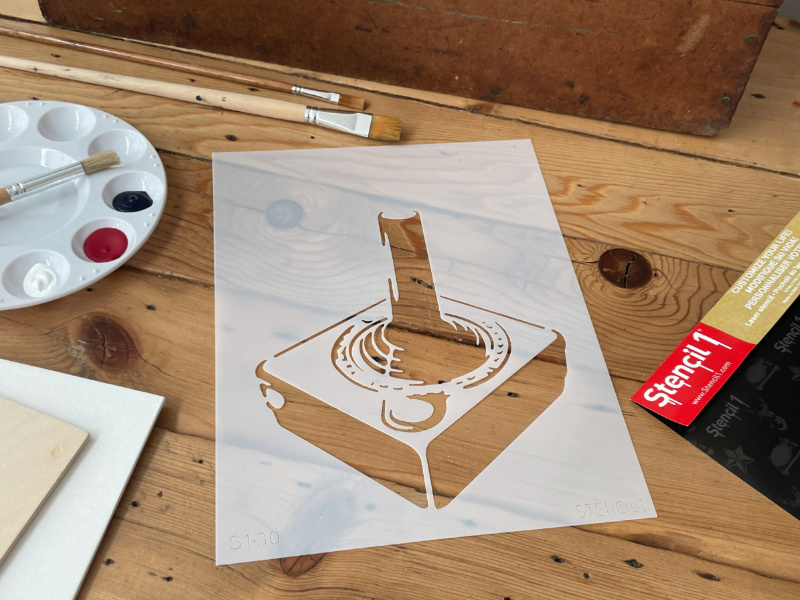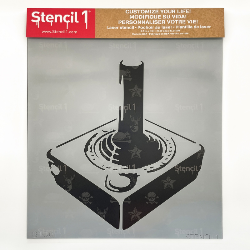 This Stencil1 Joystick stencil is great for many surfaces. Layer with another Stencil1 stencil for a more complex design. Made of mylar, this stencil is washable, reusable and compatible with paints, inks, markers, pencils and more. Can be applied to a variety of materials, including wood, paper, fabric, metal, ceramic, concrete and glass. Show us how you create with Stencil1 by tagging #stencil1 for a chance to be featured on Stencil1.com.