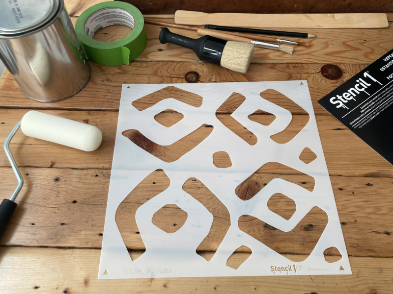 - The Stencil1® Kuba Repeating – Wall Stencil 11″ x 11″ contains one 11″ x 11″ mylar stencil