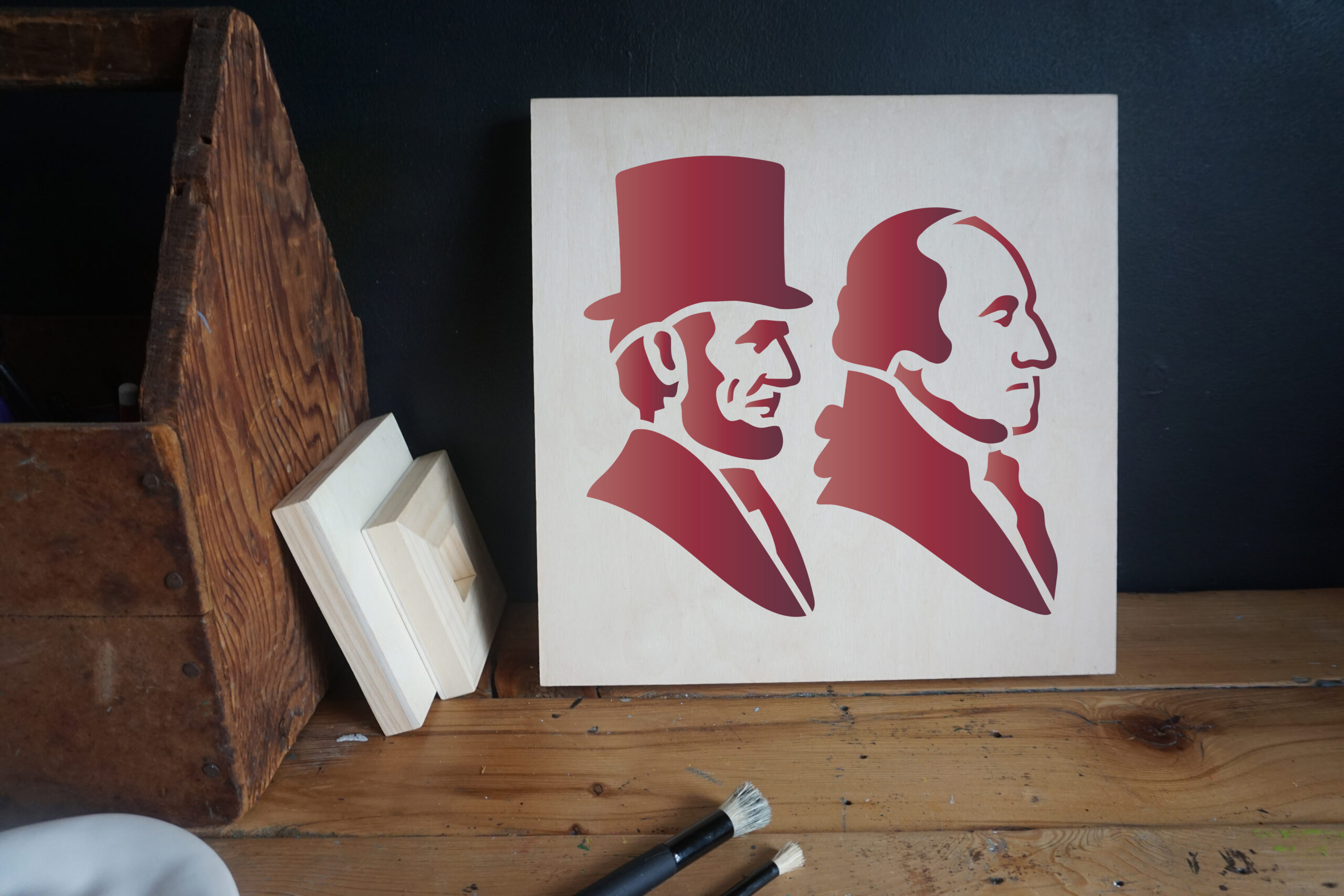 This Lincoln Washington Stencil measures 8.5″ wide by 11″ in height. Ideal for smaller surfaces, art projects, t-shirts, and more!