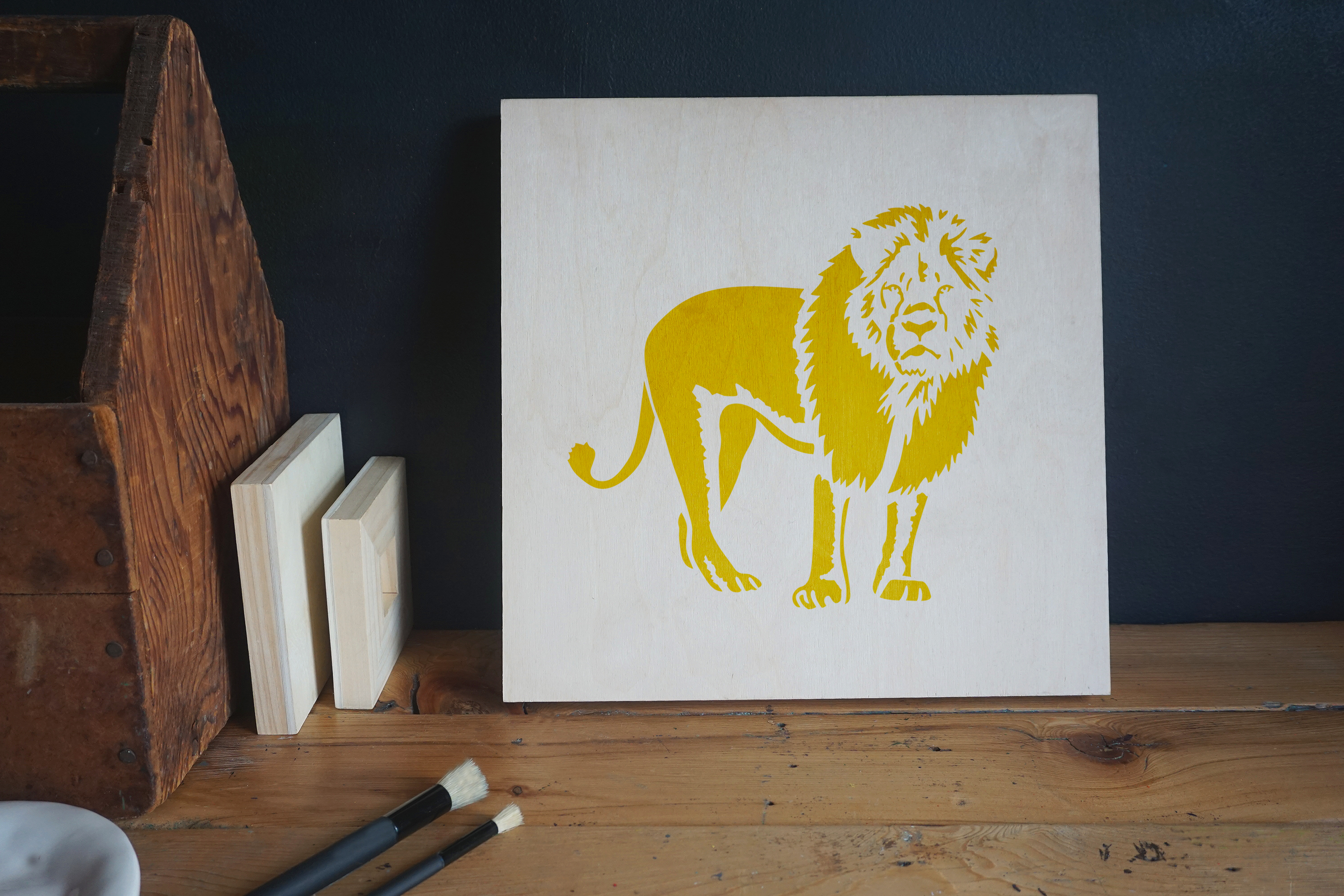 This Stencil1 Lion stencil is great for many surfaces. Layer with another Stencil1 stencil for a more complex design. Made of mylar, this stencil is washable, reusable and compatible with paints, inks, markers, pencils and more. Can be applied to a variety of materials, including wood, paper, fabric, metal, ceramic, concrete and glass. Show us how you create with Stencil1 by tagging #stencil1 for a chance to be featured on Stencil1.com.