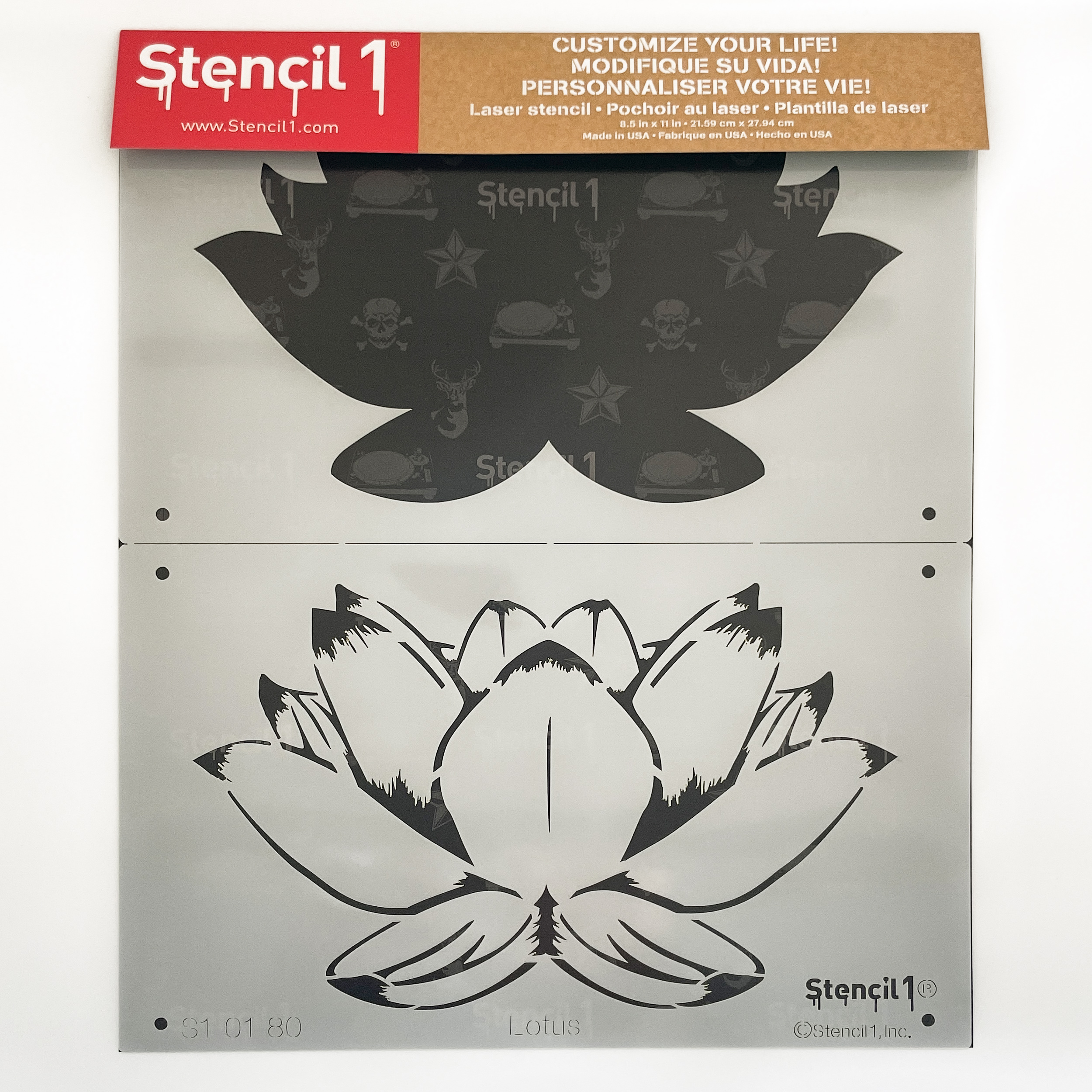 This Stencil1 Two-layer Lotus stencil is easy to use and adds depth to your creative projects. First paint the outline or silhouette shape, then paint the detailed layer over the first and you’re done! Create on-trend t-shirts, cards and artwork! Made of mylar, this stencil is washable, reusable and compatible with paints, inks, markers, pencils and more. Can be applied to a variety of materials, including wood, paper, fabric, metal, ceramic, concrete and glass. Show us how you create with Stencil1 by tagging #stencil1 for a chance to be featured on Stencil1.com.
