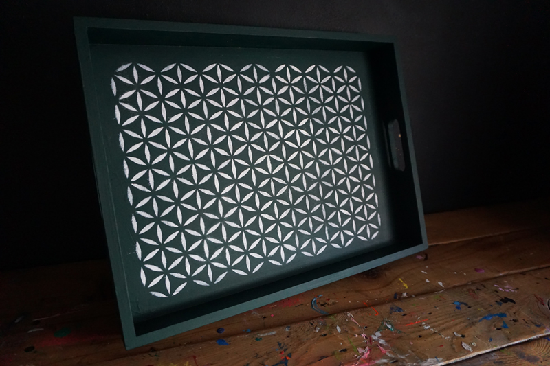 This Moroccan Petal Pattern stencil measures 5.75″ x 6″ and is designed to repeat, perfect for creating a wallpaper effect on your t-shirts or any small surface.