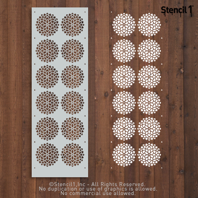 This 22″ x 66″ Mum Repeat Pattern Pro Stencil is designed to repeat from top to bottom of your wall, creating a wallpaper effect on your walls. Transform any bedroom, living room, or office with this bold and trendy wall stencil! Paint these all-over stencils any color to perfectly match your home decor.