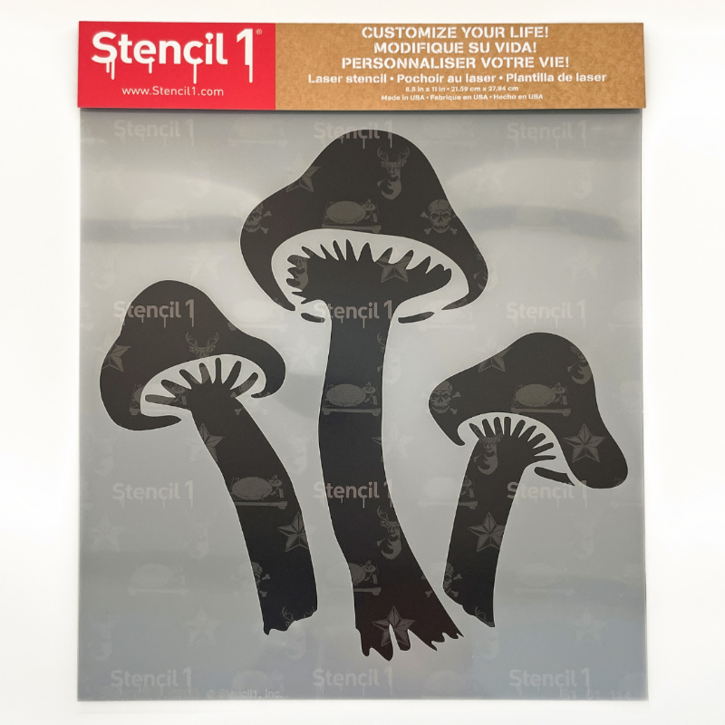 - The Stencil1® Mushrooms – Stencil 8.5″ x 11″ contains one 8.5″ x 11″ mylar stencil