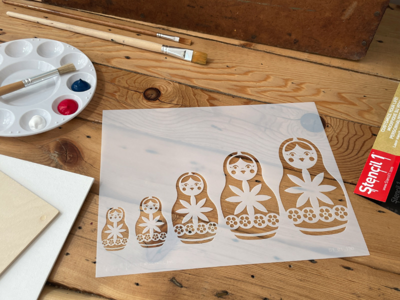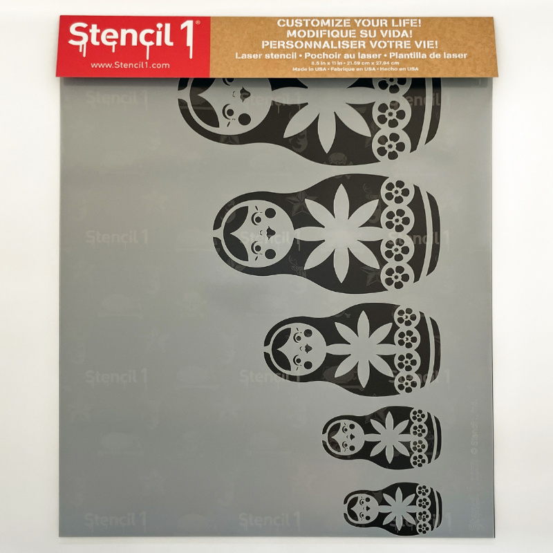 - The Stencil1® Nesting Dolls – Stencil 8.5″ x 11″ contains one 8.5″ x 11″ mylar stencil