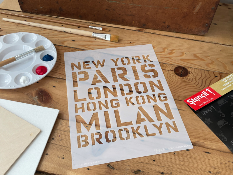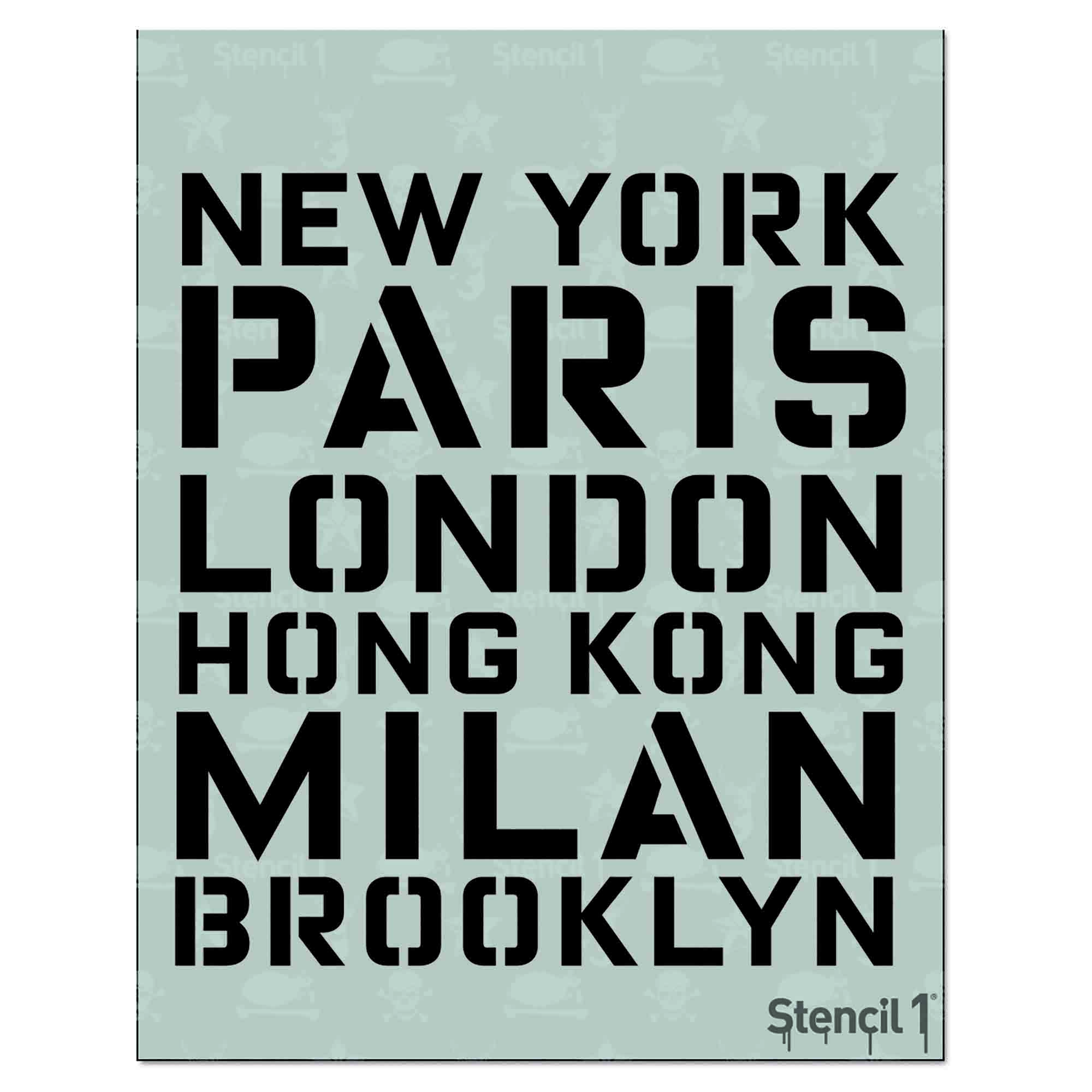 New York, Paris, London, Milan, Hong Kong, Brooklyn! Standard sized stencils measure 8.5″ x 11″ with a single image. Make t-shirts using our stencils and fabric paint!