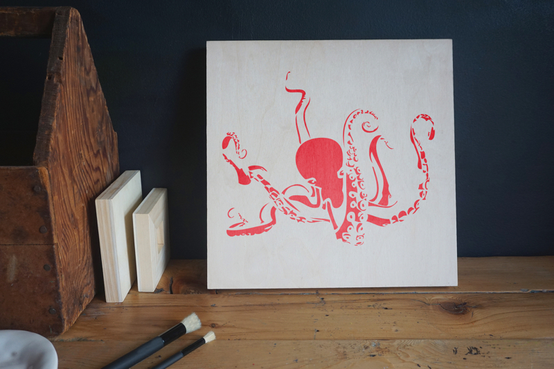 This Stencil1 Octopus stencil is great for many surfaces. Layer with another Stencil1 stencil for a more complex design. Made of mylar, this stencil is washable, reusable and compatible with paints, inks, markers, pencils and more. Can be applied to a variety of materials, including wood, paper, fabric, metal, ceramic, concrete and glass. Show us how you create with Stencil1 by tagging #stencil1 for a chance to be featured on Stencil1.com.