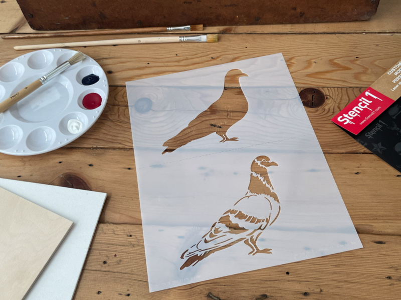 • The Stencil1® Pigeon – Layered Stencil 8.5″ x 11″ contains one 8.5″ x 11″ mylar stencil