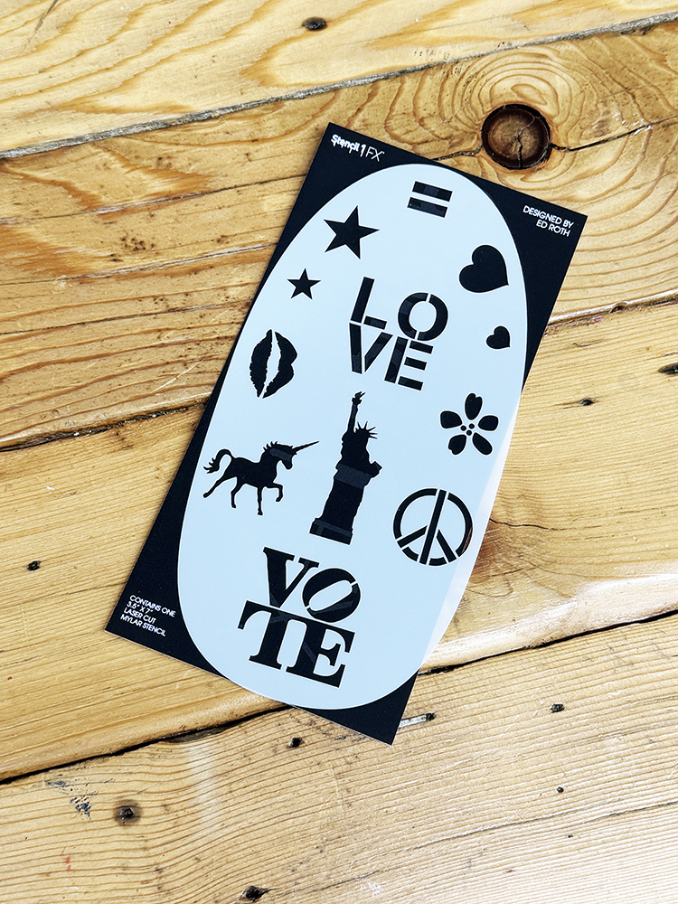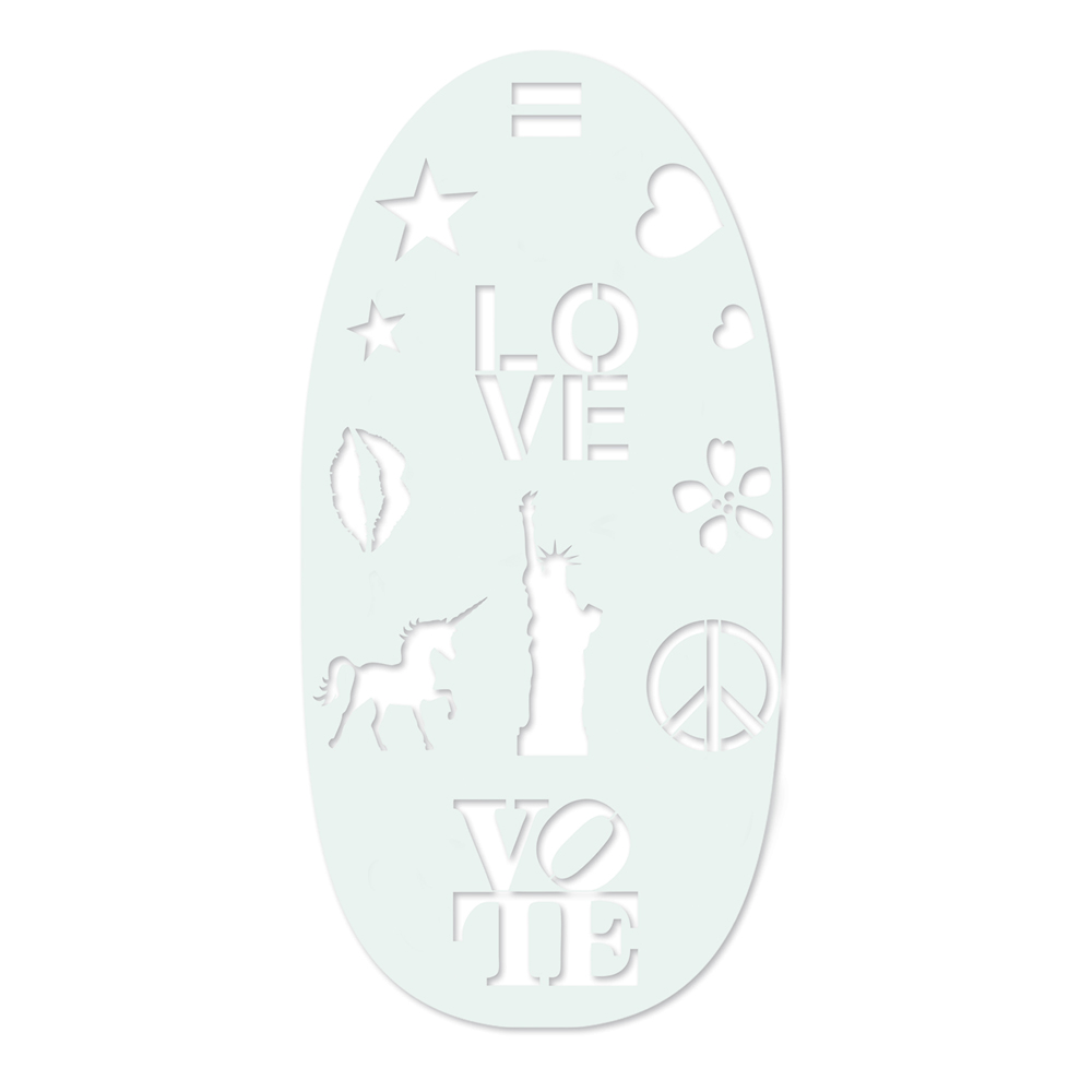 - The Political Icons stencil is great for creating a fun look for festivals, parties, and more! The stencil includes several designs on one sheet including hearts, stars, dots, dashes, lines, chevron patterns and more.