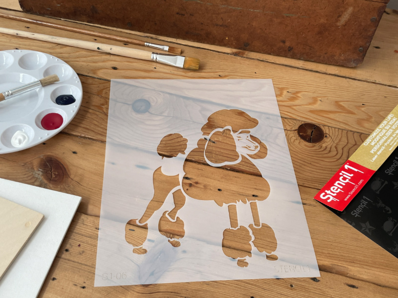 This Stencil1 Poodle stencil is great for many surfaces. Layer with another Stencil1 stencil for a more complex design. Made of mylar, this stencil is washable, reusable and compatible with paints, inks, markers, pencils and more. Can be applied to a variety of materials, including wood, paper, fabric, metal, ceramic, concrete and glass. Show us how you create with Stencil1 by tagging #stencil1 for a chance to be featured on Stencil1.com.