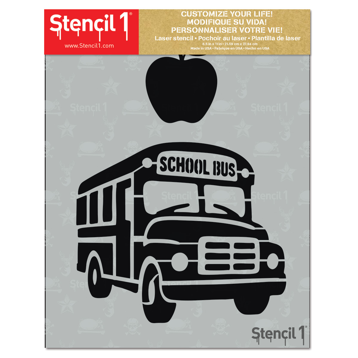 • The Stencil1® School Bus Apple Stencil 8.5″ x 11″ contains one 8.5″ x 11″ mylar stencil