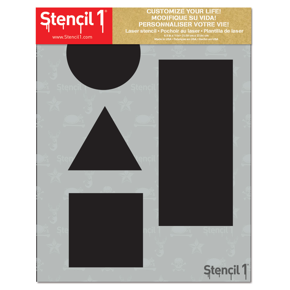 • The Stencil1® Simple Geometric Shapes Stencil 4 Pack 8.5″ x 11″ contains one 8.5″ x 11″ mylar stencil