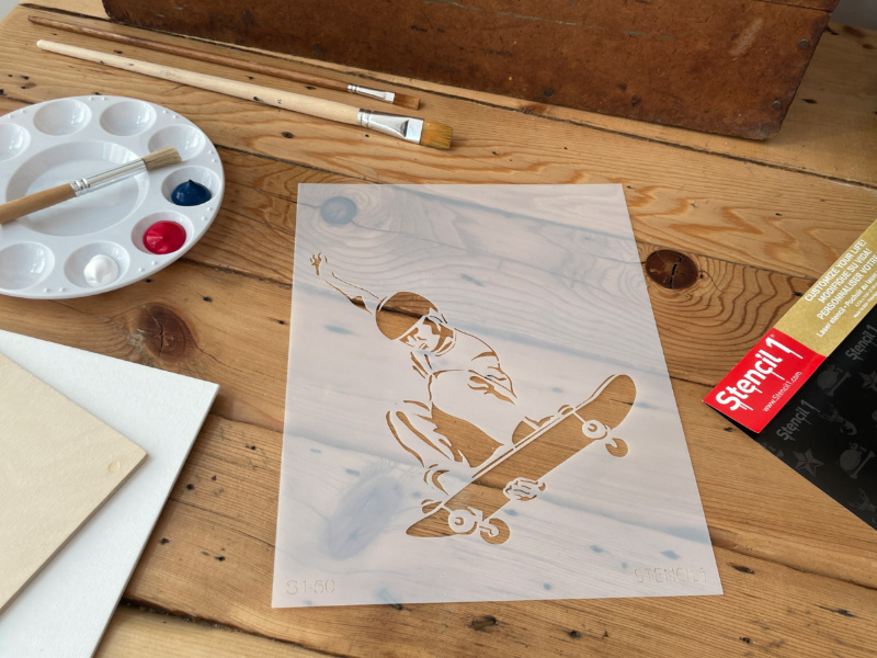 This Stencil1 Skater stencil is great for many surfaces. Layer with another Stencil1 stencil for a more complex design. Made of mylar, this stencil is washable, reusable and compatible with paints, inks, markers, pencils and more. Can be applied to a variety of materials, including wood, paper, fabric, metal, ceramic, concrete and glass. Show us how you create with Stencil1 by tagging #stencil1 for a chance to be featured on Stencil1.com.