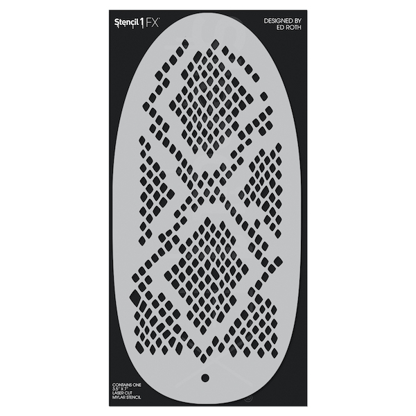 - 🐍 Contains one 3.5″ x 7″ laser cut mylar Snakeskin Pattern stencil, oval in shape. Made in USA.