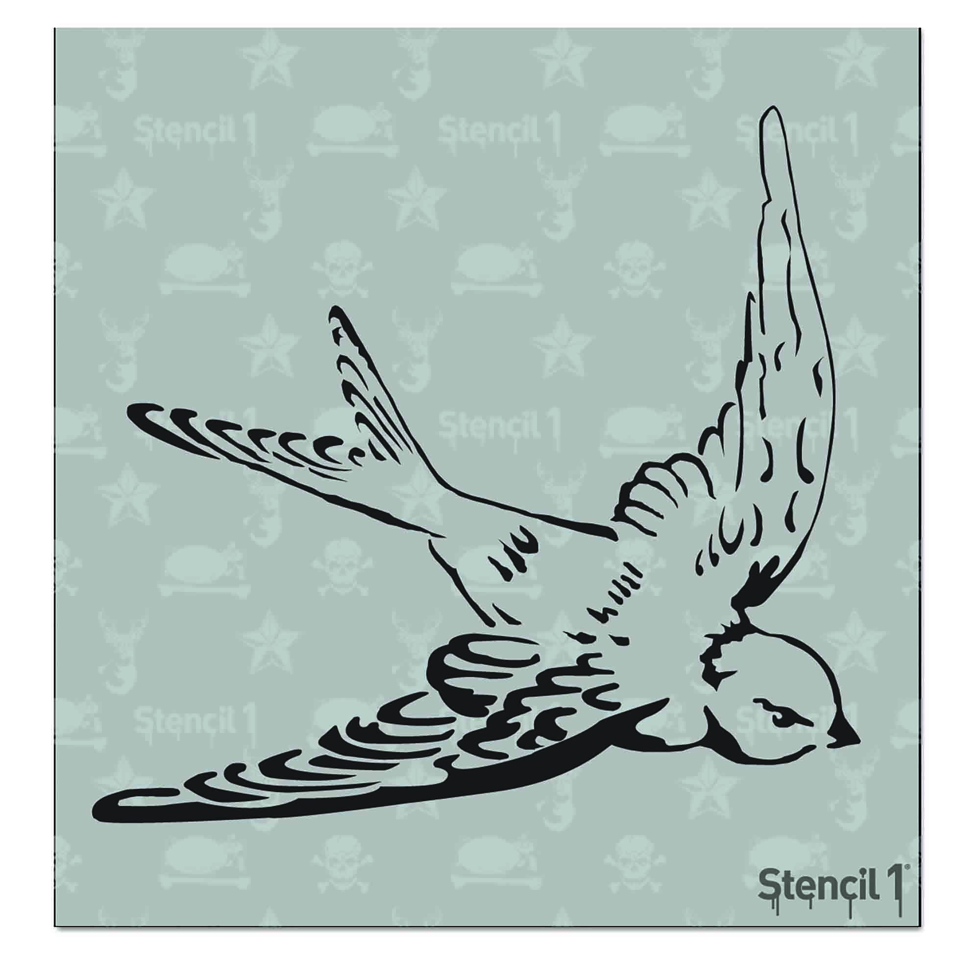 This Stencil1 Swallow stencil is great for smaller surfaces. Layer this bird stencil with another Stencil1 stencil for a more complex design. Made of mylar, this stencil is washable, reusable and compatible with paints, inks, markers, pencils and more. Can be applied to a variety of materials, including wood, paper, fabric, metal, ceramic, concrete and glass. Show us how you create with Stencil1 by tagging #stencil1 for a chance to be featured on Stencil1.com.