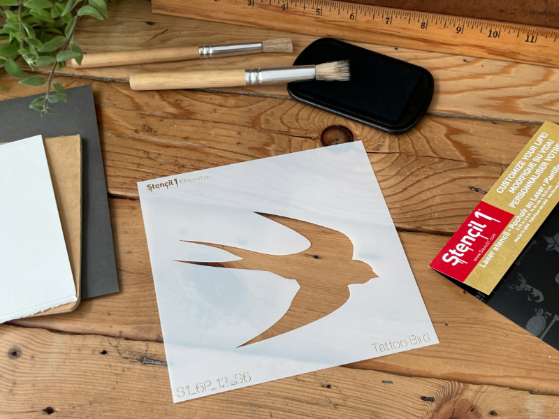 This Stencil1 Tattoo Bird stencil is a classic. A beautiful swallow silhouette stencil – personalize your wardrobe, accessories or body with this timeless symbol. Paint it on jeans, t-shirts, accessories or use with makeup. Layer it with other Stencil1 stencils for a more complex design. Made of mylar, this stencil is washable, reusable and compatible with paints, inks, markers, pencils and more. Can be applied to a variety of materials, including wood, paper, fabric, metal, ceramic, concrete and glass. Show us how you create with Stencil1 by tagging #stencil1 for a chance to be featured on Stencil1.com.